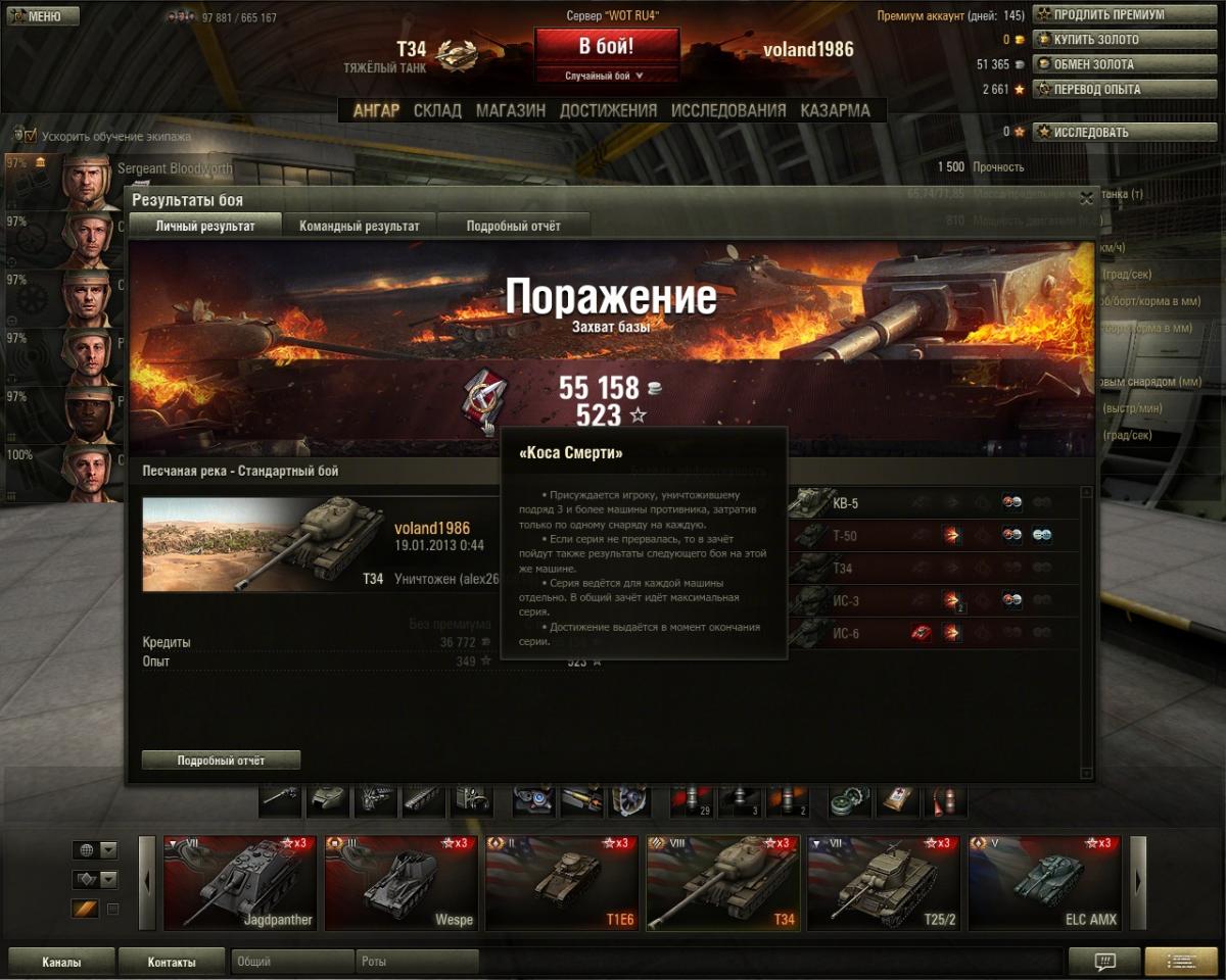 Приветствую. Поясните, пожалуйста, "коса смерти" ещё выдаётся за три трупа подряд с одного снаряда? Если да, то где моя "коса" за этот бой?