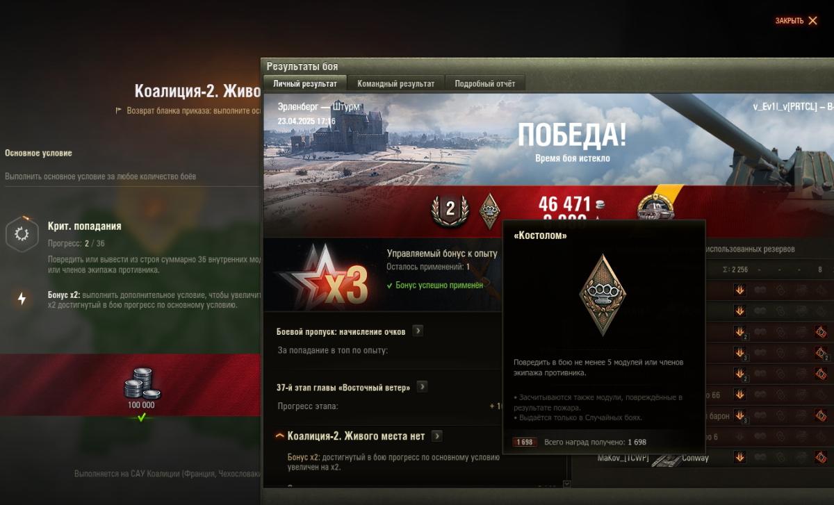 Задание простое. На первый взгляд. Перед боем уже было 2 из 36. При чем сыграно всего боев 20-30 уже и за них всего 2 поврежденных модуля. После этого боя так же осталось. Что я делаю не так или это баг???