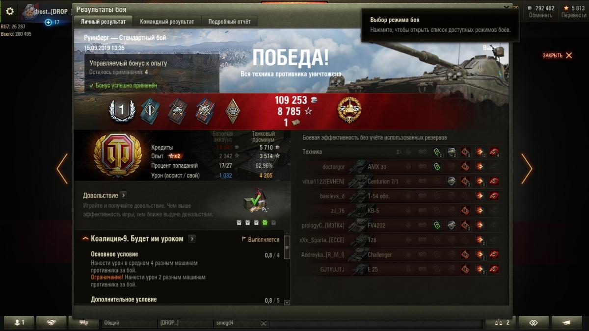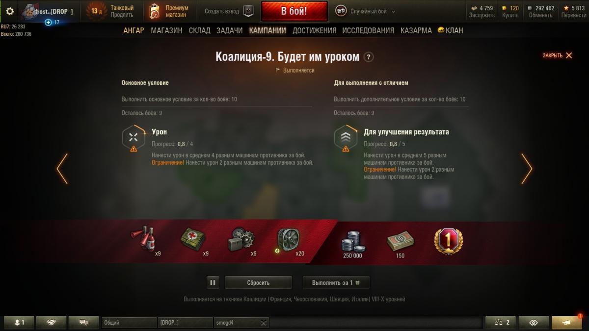 да как так коалиция-9 нанести урон по 4 разным танкам http://cdn-frm-eu.wargaming.net/wot/ru/uploads/monthly_09_2019/post-13392482-0-65146300-1568541728_thumb.jpg прогрес 0.8 из 4. скатал пока 1 бой вот результатыhttp://cdn-frm-eu.wargaming.net/wot/ru/uploads/monthly_09_2019/post-13392482-0-11659100-1568541837_thumb.jpg вопрос с какого перепуга прогресс 0.8 когда было поврежденно 8 машин