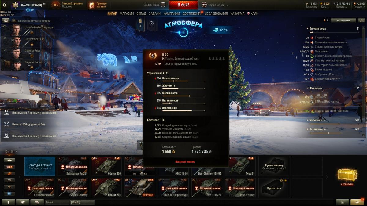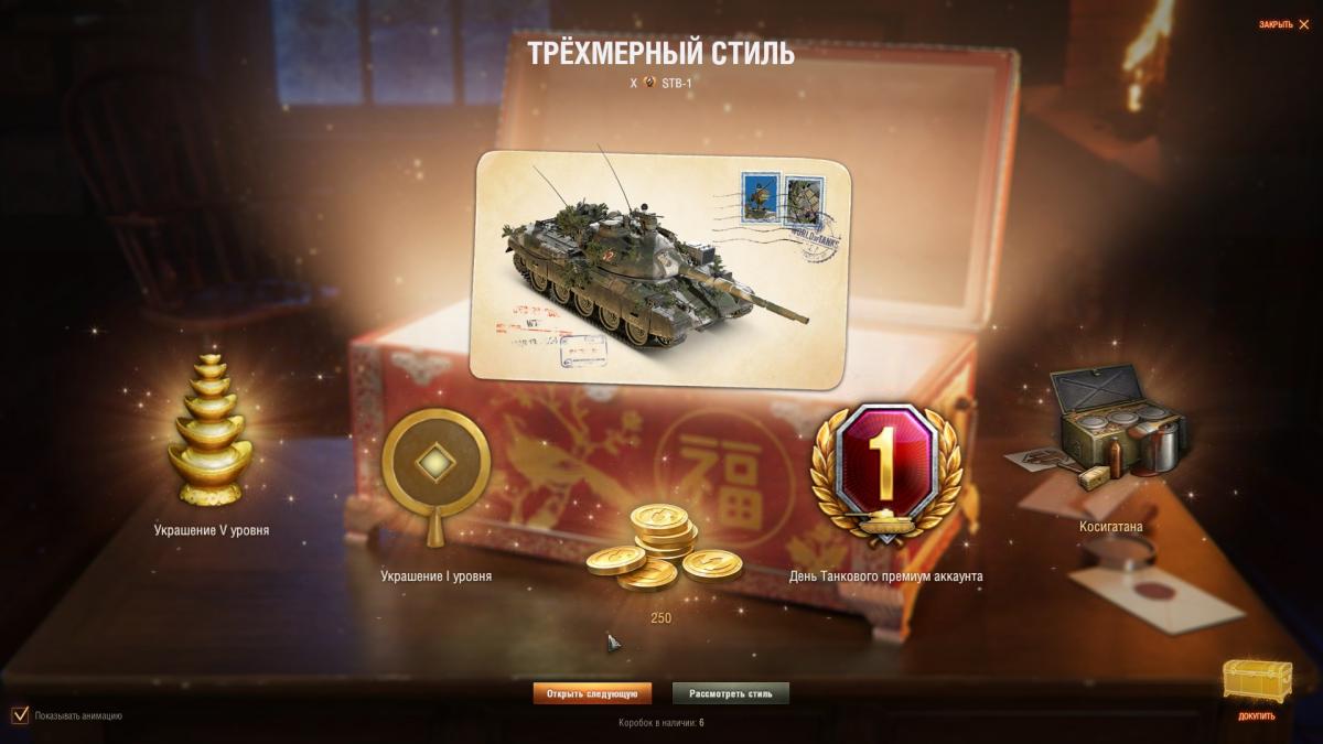Итак, стартовала новая суперлотерея от бесконечно любимой нами картофельной компании... Прошу в этой уютной теме делиться вашими успехами в выигрыше "ценных" призов. Но для начала я бы хотел донести немножко информации о формуле Бернулли для задачи о лотерейных билетов и статистике о выигрышах прошлых лет. Итак, в среднем с коробке без учета компенсаций танков по статистике прошлого сезона выпадает 340 ед золота. Т.е. купив 5 коробок вы скорее всего получите 1700 голды, 20-ти коробок 6800 ед. голды, а 45 коробок принесут 15 300 ед голды. Может, чуть больше, может чуть меньше. Второй ценный приз - дни премакка. В среднем - 0,7 дней с коробки. 5 коробок - 3,5 дня; 20 коробок - 14 дней, 45-коробок - 31,5 день. Многие говорят, что коробки это шанс выгодно разжиться голдой и премаком, но по факту получается, что это не совсем так, особенно если учесть, что за 500 рублей (цена 5 коробок) вы сможете взять 1750 голды и 7 дней. Однако гораздо интереснее ответ на вопрос: "Как выбить премтанк?" И здесь мы обратимся к решению задачи о летерейных билетах по формуле Бернулли. Итак, вероятность выпадения премтанка 8-го лвл в прошлом году была 2%, а низкоуровниевого - 11,5%. Скорее всего в этом году ничего не изменится. Но если вы думаете, что купив 50 билетов, получите 100% вероятность получить премтанк из коробки, то глубоко заблуждаетесь. Для 5-ти коробок: вероятность выпадения одного премтанка 8-го лвл - 9%, а двух 0,4%. С вероятностью 90,5% вы не выиграете ни одного. Низкоуровниевый прем вы выбьете с вероятностью - 35%, а два с вероятностью 9%. Ну а с вероятностью чуть более 1% вы получите сразу три. 54% - ни одного. Для 20-ти коробок: 27% вероятность получить премтанк 8-го лвл, 2 премтанка - 5% и 0,7% - три. С вероятностью 66,8 % вам не выпадет ни одного. Для лоулвл - 27% один танк; 28% - два танка, 22% - три танка; 12% - четыре танка, 5% - пять танков, и 1,6% - шесть танков. С вероятностью 8,7% не будет ни одного. Ну а что будет, если раскошелится сразу на 45? Один премтанк 8-го лвл - 37%, два танка - 17%, три - 5%, четыре - 1%. С вероятностью 40% не выпадет ни одного. Низкоуровниевые - 2,4% всего один; 71% - два танка; 13% - три танка; 17% - четыре танка; 18,5% - пять танков; 16% - шесть танков; 11,6% - семь танков; 7% - восемь танков; 4% - девять танков и 2% - десять танков. 4%-я вероятность, что не выпадет ни одного лоу-лвл премтанка. Известно, что один игрок купил в прошлом году 160 коробок и не выиграл ни одного премтанка 8-го лвл. Вероятность такой неудачи 4%. Для другого числа коробок можете посчитать здесь - https://www.matburo.ru/tvart_sub.php?p=calc_bern_ticket Именно низкоуровниевые премы являются главным источником "дополнительного" золота, позволяющего наполнить вашу казну за счет компенсации. Так что если у вас есть проданные за серебро локус, Т15 и МотяБП - срочно восстановить через ЦП!!! Сколько же покупать коробок - каждый решает сам. Мне кажется, что самым интересным в них являются игрушки, которые могут в самые первые дни поднять атмосферу и получать бонусы к прокачке, кредитам и прочему. Но сразу нарядить и получить 10-й уровень, скучновато, ИМХО. 20-ть коробок дадут вам 7 или 8-й уровень, что для меня оптимальный вариант. Жду ваших комментариев и отчетов об удаче. Всем добра и хорошего праздника! Итак, купил 20 коробок Восточного Нового года. Дошли ко мне они через полтора часа (это классика нового года). В это трудно поверить, но.... Выпали 17 дней премакка, ГСОР, М4фл10, Т78 (два раза), Т15 (получил компенсацию), стили на Япо
