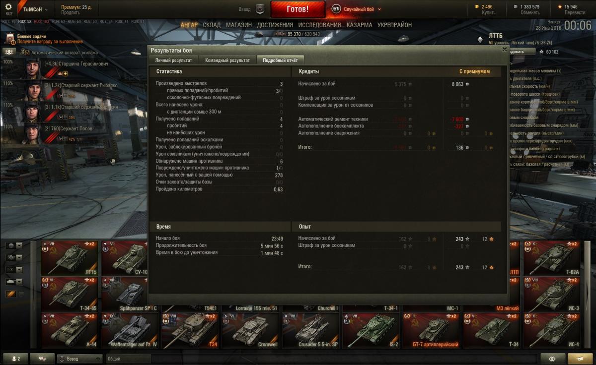 Добрый день. Как известно из описания 15 задания на легкий танк, урон нанесенный по вашим разведданным или после сбития вами гусеницы, должен составлять не менее 5000 (2-ое ЛБЗ). Как видно по скриншотам ниже, засчитанный урон в помощнике (722 урона)http://cdn-frm-eu.wargaming.net/wot/ru/uploads/monthly_01_2016/post-63982-0-02088600-1453918096_thumb.jpg и урон засчитанный в "итоге боя" (273) http://cdn-frm-eu.wargaming.net/wot/ru/uploads/monthly_01_2016/post-63982-0-36353800-1453918215_thumb.jpg мягко говоря не сходятся. Это мой не первый раз, когда я наблюдаю такую ситуацию. Например был бой в котором я на светил на 6000 урона, это цифра была в итоге боя, а в помощнике как был НУЛЬ, так он там и остался. Есть мнение и по собственному опыту, мне думается что в описание задания закралась ошибка или же был допущен просчет в системе Боевых Задач. Как мне представляется описание в БЗ должно быть следующим: урон нанесенный по вашим разведданным (нет или) после сбития вами гусеницы, должен составлять не менее тыщ урона.