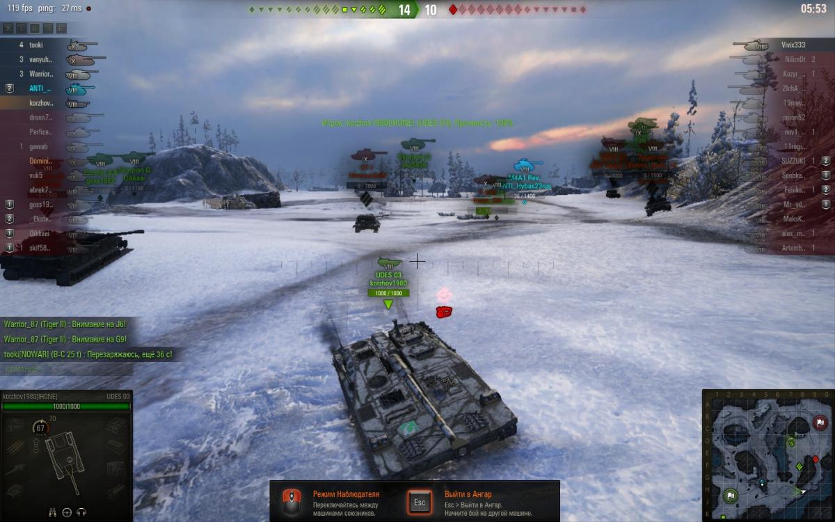 Я полагаю, что за исправление багов вам должны выписывать премии. Поэтому немного помогу. Нотабэнэ: Модов нет. На сегодня я напишу про баги интерфейса 1) При наблюдении за игроками на шведПТ можно обнаружить оповещение о крите двигателя. Баг, т.к. этот значок показывается перманентно, вне зависимости от состояния двигателя. Переключение на другой танк и обратно не помогает. 2) Глючит интерфейс в ангаре. а) не отображается стоимость пополнения снаряжения, б) не работает кнопка "принять". До этого была проблема с отображением цены на оборудование (показывало 0 кредитов). Проблема, ИМХО, с акциями на скидки (некорректная обработка цены). Исправляется переходами на другие сервера. См. скрины, тут все понятно. Если я не ошибаюсь, то это 5 и 6 баг за эту неделю. Стоит ли вообще писать о багах? 5 дней назад я написал про недоработку на портале игры (баг с этапными медалями Абрамса, Кариуса и прочими - везде отображается "медаль 1 степени", даже если это 2, 3 или 4; недоработку можно заметить, если зайти на портале в профиль любого игрока и открыть его СТАТИСТИКУ НА ЛЮБОМ ТИПЕ ТЕХНИКИ И КЛИКНУТЬ ПО МЕДАЛЬКЕ 2, 3 или 4 СТЕПЕНИ - не путать с общим списком наград на аккаунте!!!), разработчики заходили в тему, читали... и уходили общаться в трололо-темах "пачиму мне не защитали лбз САУ-15, я все выполнил на мс-1".