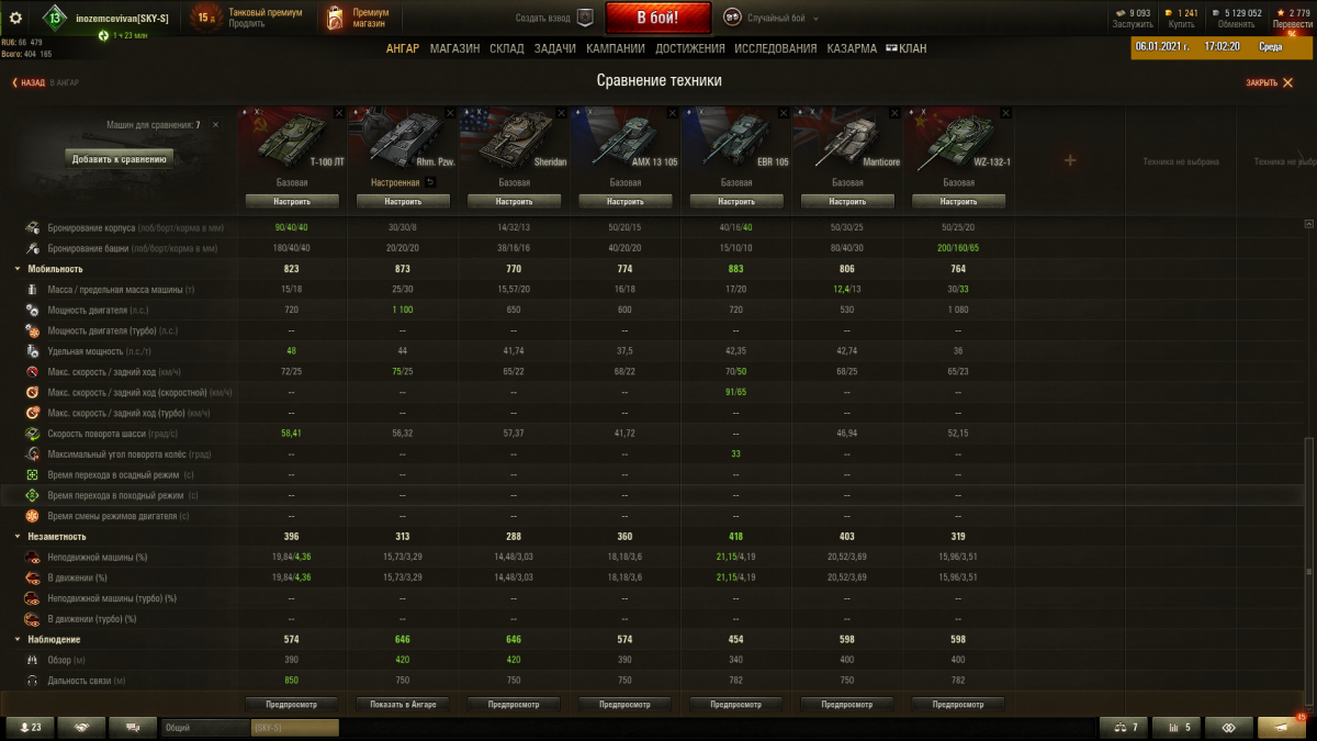 Здравствуйте, недавно в игру был введён лёгкий советский танк третьего уровня ЛТП, и после парочки боёв у меня возникло ощущение, что где-то я уже это всё видел и вспомнил про такой танчик - Т-127. И я подумал, а не является ли ЛТП бесплатной и понерфленной, бюджетной версией танка Т-127 ?! Не будем же разводить демагогию и приступим к разбору ттх. I - Бронирование Т127 \ ЛТП Примечания: Через запятую перечислены все виды бронирования (справа налево по кол-ву на танке) "!" - очень малое количество брони по площади "!!" - ну очень очень мало Лоб (40, 30 , 25!!) \ (30, 25!, 20! ) Борта (30, 40!, 25!!) \ (20, 15) Корма (30, 15, 20) \ (30, 25, 10) Лоб башни (40, 40+20, 70!!) \ (30, 0+20 , 20) Борта башни (30, 40) \ (30) Корма башни (30, 25) \ (30) Итог: В целом по бронированию Т-127 гораздо лучше ЛТП из-за толщины брони и рикошетных, обтекаемых очертаний. II - Боевые характеристики Т127 \ ЛТП урон (47/47/62) \ (47/47/62) разброс (0.43) \ (0.46) скорость сведения (2.05) \ (2.1) бронепробитие (51/84/23) \ (51/84/23) скорострельность (26.25) \ (25) урон в минуту (1234) \ (1175) боезапас (104) \ (150) угол склонения вниз (-8) \ (-8) угол склонения вверх (+25) \ (+20) Скорость полёта снаряда (757/956/757) \ (757/956/757) Итог: Т127 гораздо лучше ЛТП в плане точности, и в остальном , кроме боекомплекта (хотя он большой у обоих танков), Т127 превосходит ЛТП по боевым качествам. III - Ходовые качества Т127 \ ЛТП масса (12.64) \ (10.98) про массу решайте сами удельная мощность (19.78) \ (15.48) макс. скорость (38/15) \ (45.1/18) скорость поворота шасси (34) \ (52) скорость поворота башни (45.5) \ (36) общая скорость поворота (79.5) \ (88) Итог: Т127 гораздо быстрее набирает свою максимальную скорость, из-за большей удельной мощности, однако его максимальная скорость меньше, что критично для лёгких танков. Шасси и танк ЛТП в целом поворачивается быстрее, но у Т127 скорость поворота башни выше, значит ему комфортнее играть в кустах (в кустах нельзя вращать корпусом, но можно башней). Каждый должен выбрать: Ускорение и поворот башни или Максимальная скорость и поворот шасси. IV - Обзор и рация Т127 \ ЛТП Обзор (320) \ (310) дальность связи (300) \ (360) Итог: Т127 видит немного дальше, но дальность связи у него заметно ниже(20%). V - Экипаж и дополнительная информация T127 \ ЛТП ЭкипажКомандир \ Командир (Наводчик, Радист)Наводчик (Заряжающий) \ Механик-водитель Механик-водитель \ Заряжающий Радист ~P.S. на т127 можно учить полноценный экипаж для т50 или а20 Стоимость (850g) \ (0) Уровень боёв (3-4) \ (3-4) Критуемость: у Т127 выбивается часто радист и иногда наводчик, а у ЛТП часто выбивается мехвод Прочность (250) \ (230) Общий итог: Т127 превосходит лтп по ДПМу, точности, Хп, бронированию, поворотливости башни, удельной мощности, обзору, скорости сведения, НО уступает в дальности связи, максимальной скорости, скорости поворота шасси, бронировании кормы. Решайте сами, но по моему мнению Т127 гораздо лучше танка ЛТП. Спасибо за просмотр !