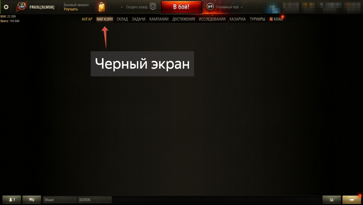 Добрый день! Третьи сутки не могу войти во внутриигровой магазин. Уточнял у сокланов-у них все работает. Играю без модов (чистый клиент), все остальные кнопки(склад, задачи, достижения, исследования и т.д.) работают и всё отображается. Просьба помочь советом.