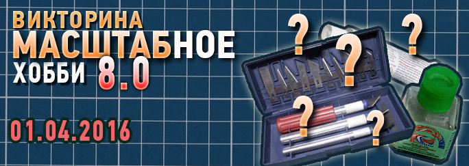 http://cdn-frm-eu.wargaming.net/wot/ru/uploads/monthly_04_2016/post-4861458-0-05501800-1459505297.jpg Тема для обсуждения викторины - по ссылке. На каждый вопрос предложено 4 варианта ответа, 1 из них правильный... но дочитайте это сообщение до конца... Надо ответить на все вопросы викторины и отправить ответы письмом на электронный адрес victorina@wargaming.net Публикация ответов на форуме в процессе проведения викторины запрещена. Ответы будут приниматься сегодня до 19:00 (МСК). ВОПРОСЫ: 1.Какая бумага лучше подходит для печати брошюр с бумажными моделями?1) Матовая фотобумага2) Офисная бумага3) Глянцевая фотобумага4) Туалетная бумага 2.Наиболее правильное название внутренних силовых элементов бумажной модели?1) Экзоскелет 2) Баркас 3) Каркас4) Корпус 3.Для защиты от влаги бумажную модель лучше всего покрыть:1) Лаком2) Маслом3) Матом4) Клеем 4.Какой клей меньше всего подходит для склейки моделей из брошюр?1) ПВА2) Клей-карандаш3) Супер-клей4) Крахмальный клейстер 5.Для вырезания мелких деталей из бумаги лучше всего подходит:1) Столовый нож2) Штык-нож3) Цанговый нож4) Бивачный нож 6.Производители наборов с пластиковыми моделями не кладут в коробку:1) Инструкцию по сборке2) Схему окраски3) Декали с опознавательными знаками4) План местности 7.Что обычно означает термин "цветовая модуляция"?1) Пыль и грязь на модели2) Имитация теней и освещенных участков 3) Сколы и потертости4) Необъяснимый и непонятный процесс 8.Если смешать художественную масляную краску и уайт-спирит, то получится:1) Фильтр и/или смывка2) Клей для прозрачных деталей3) Средство для удаления акриловой краски4) Ничего не получится, я уже пробовал. 9.При грунтовке и окраске модели лучше всего защитить органы дыхания про помощи:1) Рекуператора2) Сварочной маски3) Респиратора4) Шапочки из фольги 10.Эта фирма никогда не выпускала модель советского танка Т-55 в масштабе 1/35: 1) Tamiya2) Takom3) Скиф4) Trumpeter Образец оформления письма: Тема письма: Викторина «МАСШТАБное хобби 8.0» Текст письма: Имя учётной записи (имя в игре). Ваши варианты ответов.Пример: ivanov555 1- 1 2- 2 3- 2 4-..... 5-.... 6-..... Будьте внимательны при составлении письма. В случае победы приз будет начислен именно на ту учётную запись, имя которой вы указали. Призовой фонд: Первые 5 игроков, которые пришлют правильные ответы, получат по 14 дней премиум аккаунта. Следующие 10 участников, которые ответят правильно, получат по 7 дней премиум аккаунта . А следующие за ними 25 игроков, которые пришлют верные ответы, получат по 3 дня премиум аккаунта .Внимание! Если никто не сможет правильно ответить на все вопросы викторины, победители будут определяться по максимальному количеству правильных ответов с учетом времени получения письма. P.S. В одном из вопросов содержится подвох! Среди вариантов не будет правильного, это надо будет указать в письме, вместо номера варианта написать "правильного ответа нет" или "все ответы неправильные".