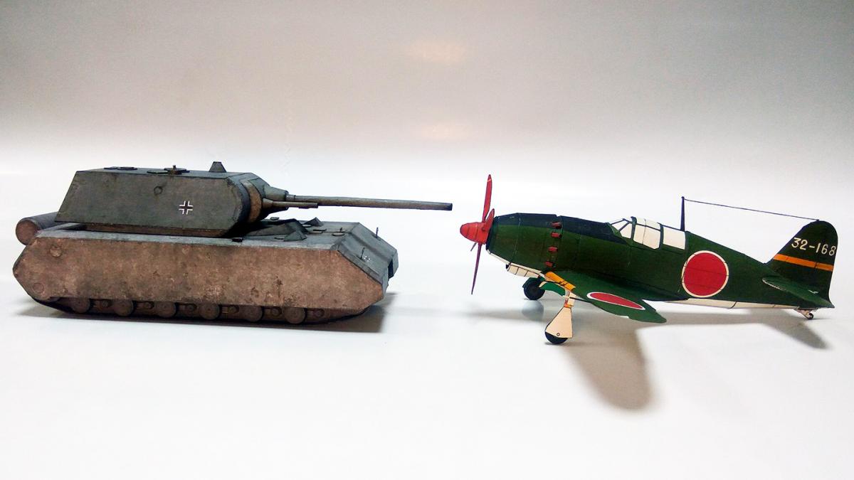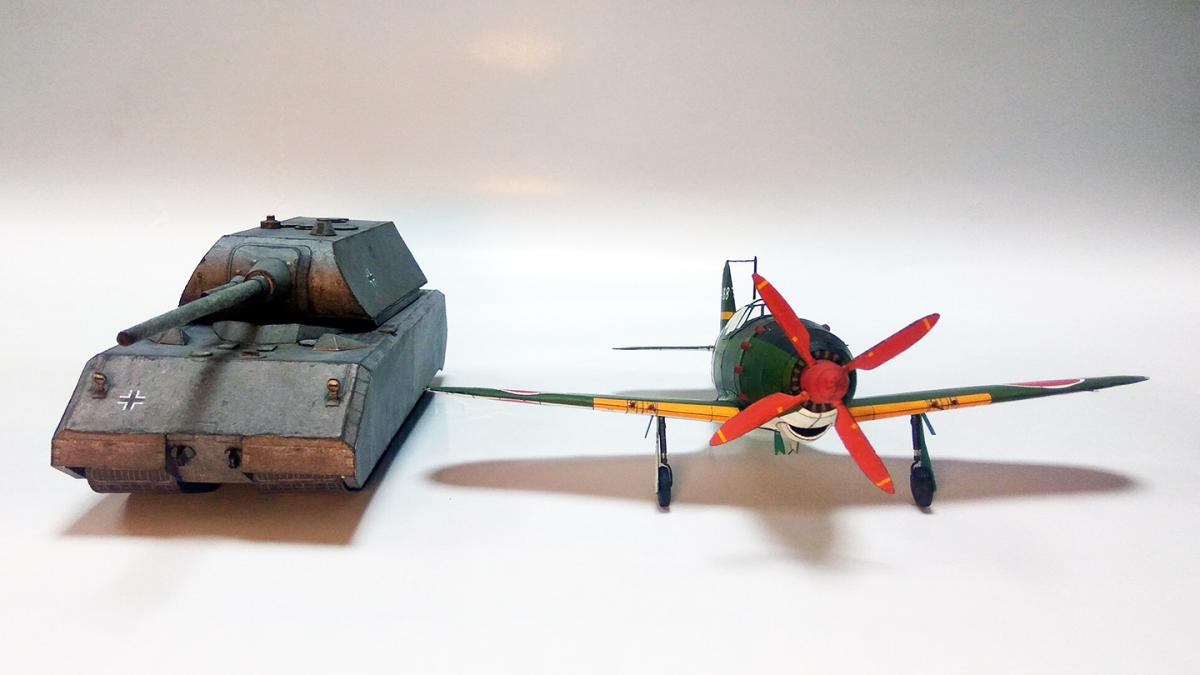 Mitsubishi J2M3 RaidenМодификация одноместного истребителя-перехватчика берегового базирования ВМС Японии J2M с усиленным вооружением из четырёх крыльевых пушек.Строился с начала 1944 года. Сборка описана в этой теме. http://cdn-frm-eu.wargaming.net/wot/ru/uploads/monthly_09_2016/post-8385505-0-33061000-1475181362.jpg http://cdn-frm-eu.wargaming.net/wot/ru/uploads/monthly_09_2016/post-8385505-0-13686700-1475181364_thumb.jpghttp://cdn-frm-eu.wargaming.net/wot/ru/uploads/monthly_09_2016/post-8385505-0-57488500-1475181365_thumb.jpghttp://cdn-frm-eu.wargaming.net/wot/ru/uploads/monthly_09_2016/post-8385505-0-09530200-1475181367_thumb.jpghttp://cdn-frm-eu.wargaming.net/wot/ru/uploads/monthly_09_2016/post-8385505-0-61798200-1475181368_thumb.jpghttp://cdn-frm-eu.wargaming.net/wot/ru/uploads/monthly_09_2016/post-8385505-0-36808000-1475181370_thumb.jpghttp://cdn-frm-eu.wargaming.net/wot/ru/uploads/monthly_09_2016/post-8385505-0-57400900-1475181371_thumb.jpg И еще немного фото соло А теперь то, зачем я его делал - сравнение с танками по габаритам.Для начала немного теории: сам J2M3 Raiden примерно соответствует по габаритам всем одноместным истребителям Второй Мировой войны. В таблице под спойлером приведены габариты нескольких истребителей того же периода, штурмовика Ил-2, а также Maus. Оказывается, Maus не такой уж и большой, а по сравнению с "летающим танком" Ил-2, так вообще маловат ... Таблица габаритовТехника Страна Тип Экипаж, мест Использовался, годы Длина, м Высота, м Размах крыла, м Mitsubishi J2M3 Raiden Япония истребитель-перехватчик 1 1943 - 1945 9,65 3,945 10,8 Maus Германия сверхтяжелый танк 6 1944 9,03 / 10,2 3,66 3,67 Messerschmitt Bf.109 Германия многоцелевой истребитель 1 - 2 1937 - 1945 8,55 - 9,02 2,5 9,85 - 11,08 Supermarine Spitfire Великобритания истребитель, перехватчик, разведчик 1 1938 - 1961 9,12 - 9,58 3,02 - 3,86 11,23 - 12,24 Bell P-39 Airacobra США истребитель 1 1941 - 1950 9,58 3,78 10,363 Як-9 СССР истребитель 1 1942 - 1950 8,5 3 9,74 Ла-5 СССР истребитель 1 1942 - 1945 8,67 2,54 9,8 Ил-2 СССР штурмовик 2 1941 - 1954 11,6 4,2 14,6 Но это все лирика теория, смотрим фото: http://cdn-frm-eu.wargaming.net/wot/ru/uploads/monthly_09_2016/post-8385505-0-73821200-1475181377_thumb.jpghttp://cdn-frm-eu.wargaming.net/wot/ru/uploads/monthly_09_2016/post-8385505-0-20283500-1475181379_thumb.jpghttp://cdn-frm-eu.wargaming.net/wot/ru/uploads/monthly_09_2016/post-8385505-0-66189100-1475181380_thumb.jpghttp://cdn-frm-eu.wargaming.net/wot/ru/uploads/monthly_09_2016/post-8385505-0-17230400-1475181382_thumb.jpg А Т-34-85 рядом с Raiden совсем игрушечным выглядит: http://cdn-frm-eu.wargaming.net/wot/ru/uploads/monthly_09_2016/post-8385505-0-60788300-1475181383_thumb.jpghttp://cdn-frm-eu.wargaming.net/wot/ru/uploads/monthly_09_2016/post-8385505-0-19807500-1475181385_thumb.jpghttp://cdn-frm-eu.wargaming.net/wot/ru/uploads/monthly_09_2016/post-8385505-0-68370800-1475181386_thumb.jpghttp://cdn-frm-eu.wargaming.net/wot/ru/uploads/monthly_09_2016/post-8385505-0-26940000-1475181388_thumb.jpg Также сделал несколько фото на китайский телефон Xiaomi Redmi Note 3 Pro с той же сцены и немного обработал.Фото даже получились терпимые: http://cdn-frm-eu.wargaming.net/wot/ru/uploads/monthly_09_2016/post-8385505-0-06645100-1475181390_thumb.jpghttp://cdn-frm-eu.wargaming.net/wot/ru/uploads/monthly_09_2016/post-8385505-0-23292400-1475181391_thumb.jpg Недостатки/выводы Ошибки описывать не буду - все в блоге на виду, а лучше опишу свои выводы. Общие по моделям самолетов: модели самолетов имеют менее угловатую форму, чем танки, поэтому требуют более точной подгонки деталей и более аккуратной стыковки; у моделей самолетов некоторые детали требуют очень сильного изгиба для придания правильной формы;По данной модели: на мой взгляд, требуется полная переделка средней части кокпита винта; лопасти винта требуется переделать перед печатью - соединить попарно, а "хвостик" основания перенести другую сторону; колеса нужно собирать не по инструкции, сначала все картонные детали, потом обтачивать, потом наклеивать боковины; на колеса желательно сделать еще центральную ленту, чтобы боковины стали заподлицо; установка основных плоскостей требует пристального внимания и возможной переделки для правильной подклейки задних "хвостиков"; толщину проволоки требуется