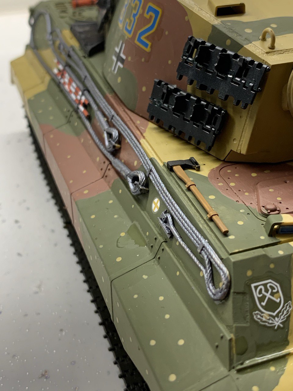 Королевский Тигр с башней Хеншель от компании ZVEZDA. Сама модель была сделана качественно, собирался легко На фото модель без покрытия лака, сам камуфляж наносился из найденных в интернете эскизов Краска от производителя Tamiya