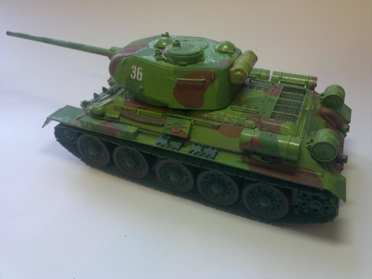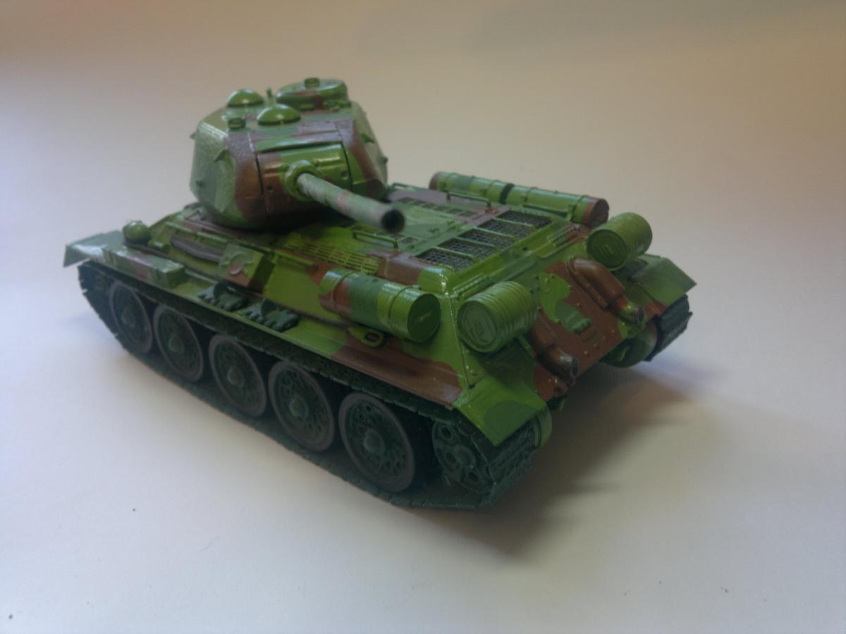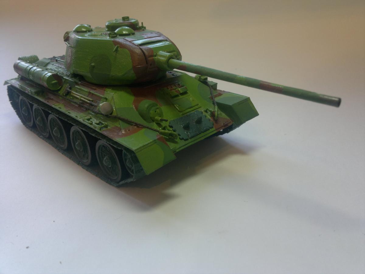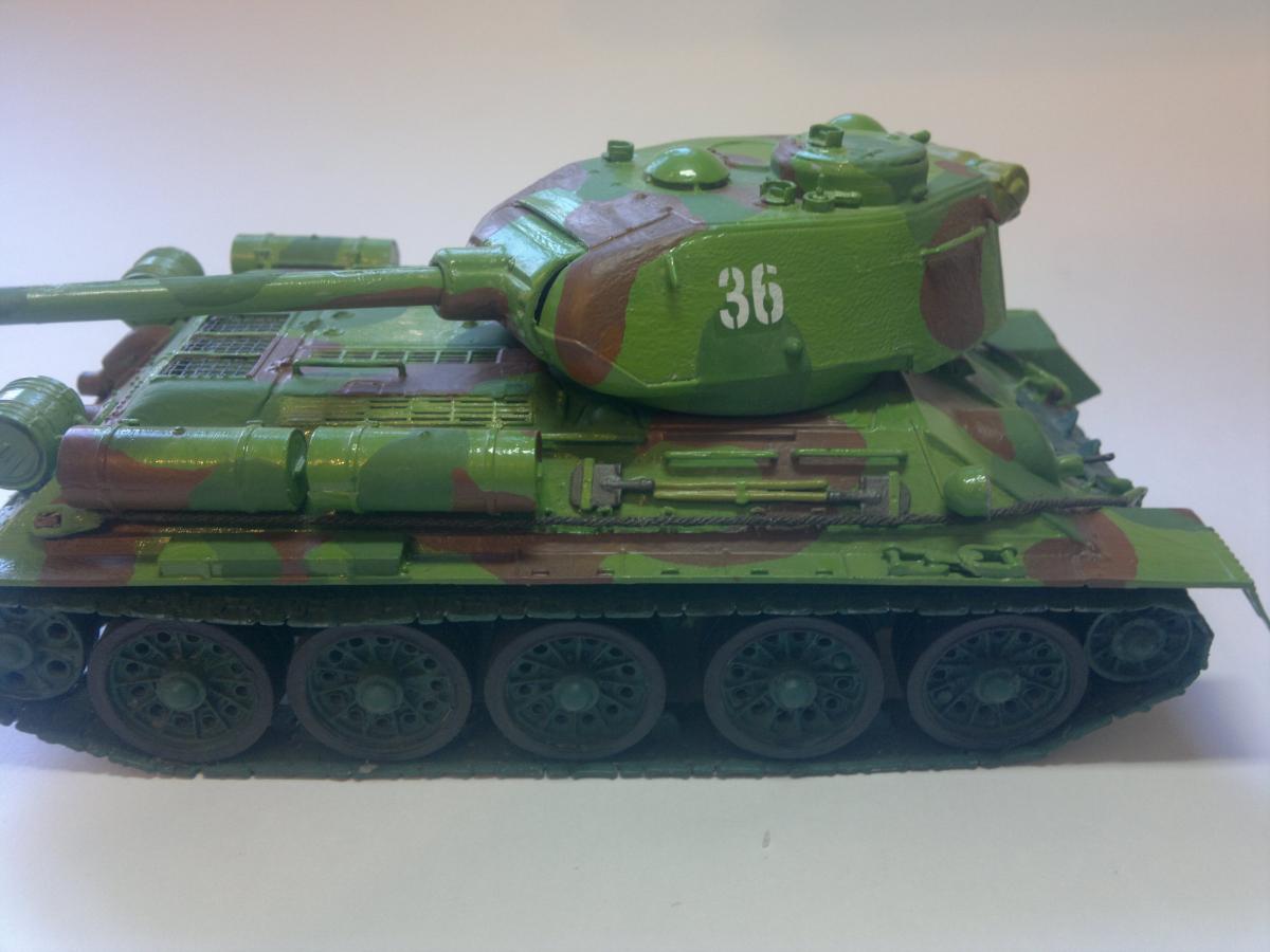 Т-34-57 с пушкой 57-мм ЗиС-4. "Моделист"...к сборке несовершеннолетних, беременных женщин, лиц с неустойчивой психикой желательно не допускать...плюс один- дешевизна набора...минусы- деформированный корпус как будто после ядерного удара(хотя комплект был в добротной упаковке, запечатан, -местами хрупкий ломкий пластик, -отсутствие сетки крыши МТО в наборе, -"наплывы", практически везде, -если детализация и есть...то символичная, -кроме "наплывов"- "выемки"(ХЗ..наверное с пластиком проблемы и его в мире осталось очень и очень мало...), -стыкуемость...(после сборки обработать напильником, и до сборки и во время...), В целом , набор для моделистов с прямыми руками, которые из подручных средств создают шедевры. У меня не шедевр, что получилось, то получилось. Модель танка создан по игре WoT, почти такой же стоит у меня в ангаре, пушку ("шило","дырокол"...) пушку ЗиС-4 57-мм использую в игре, потому и решил использовать в модели. Ствол металлический куплен отдельно. Поручни на корпусе, башне заменены на металлические, заменены троса, сделаны из оплетки телевизионного кабеля, заменены траки на фирмы МСД, доработаны катки( шпаклевка бандажей и шлифовка), доработан корпус(шпаклевка, шлифовка), расточены выхлопные патрубки, расточена труба звукового сигнала, расточена смотровые щели в командирской башне, доработаны триплекса, добавлена из остатков других наборов решетка крыши МТО. Заменен ствол пулемета. Краски- 4БО(пацифик, акан, тамия), катки- тамия, траки - мр.хобби, тамия, смывка, пигмент- А-модель, ZiP, АК. Протупил со строевыми номерами на башне...косяк бросается в глаза...прототип модели в игре один из самых любимых танков))).
