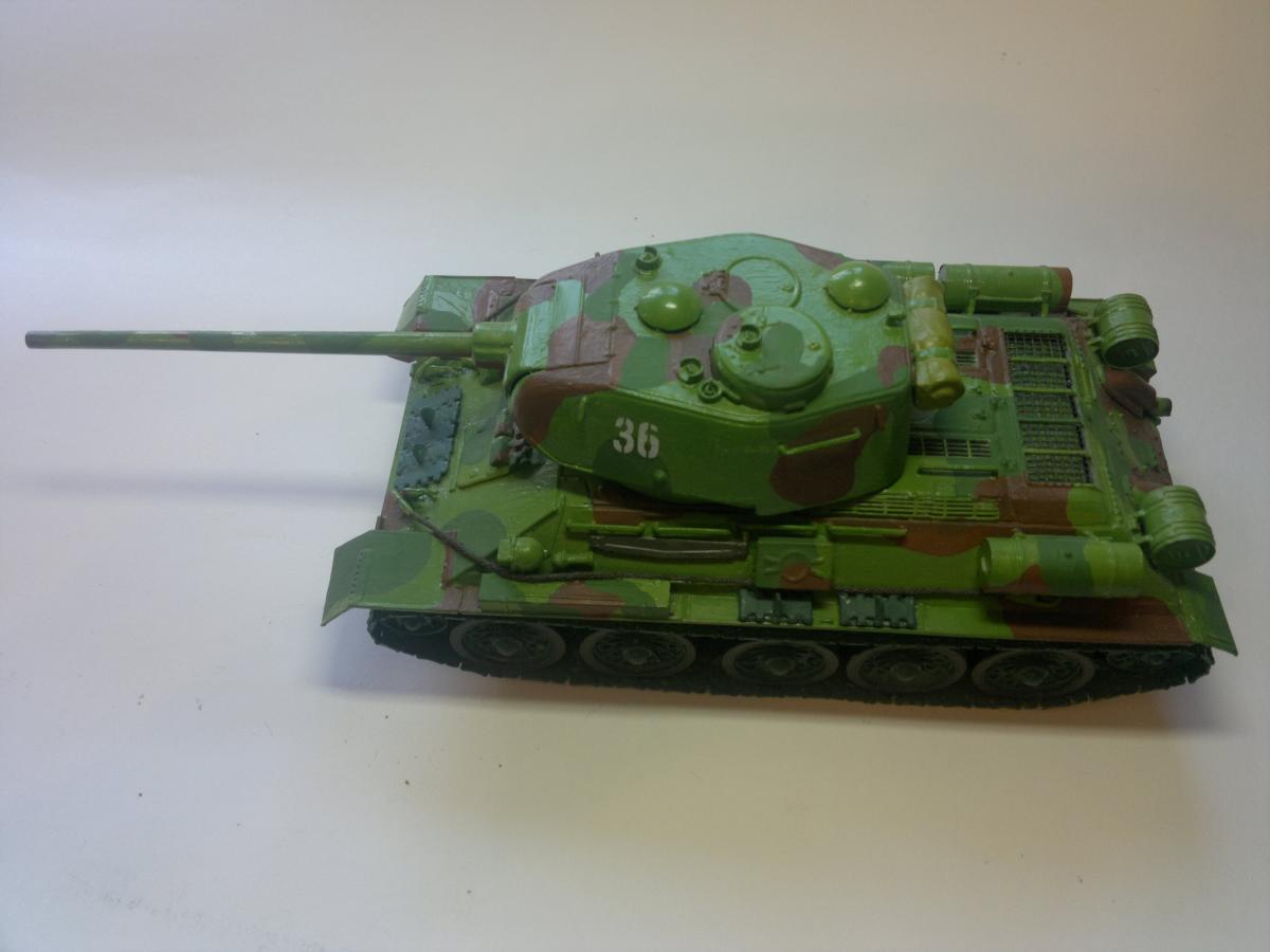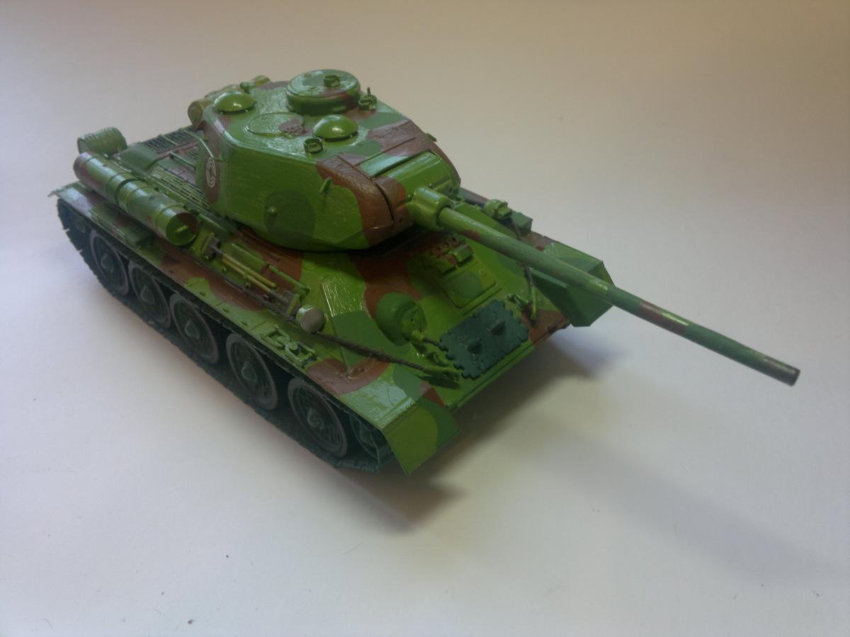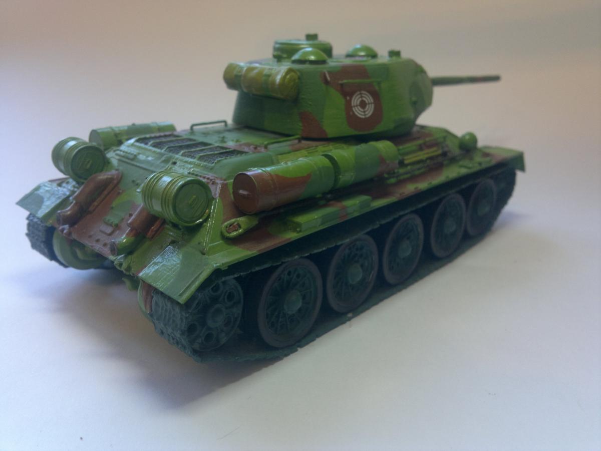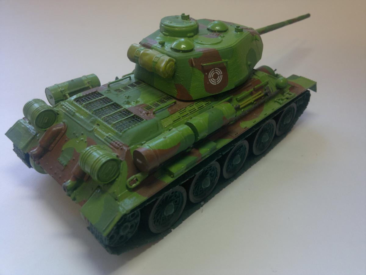 Т-34-57 с пушкой 57-мм ЗиС-4. "Моделист"...к сборке несовершеннолетних, беременных женщин, лиц с неустойчивой психикой желательно не допускать...плюс один- дешевизна набора...минусы- деформированный корпус как будто после ядерного удара(хотя комплект был в добротной упаковке, запечатан, -местами хрупкий ломкий пластик, -отсутствие сетки крыши МТО в наборе, -"наплывы", практически везде, -если детализация и есть...то символичная, -кроме "наплывов"- "выемки"(ХЗ..наверное с пластиком проблемы и его в мире осталось очень и очень мало...), -стыкуемость...(после сборки обработать напильником, и до сборки и во время...), В целом , набор для моделистов с прямыми руками, которые из подручных средств создают шедевры. У меня не шедевр, что получилось, то получилось. Модель танка создан по игре WoT, почти такой же стоит у меня в ангаре, пушку ("шило","дырокол"...) пушку ЗиС-4 57-мм использую в игре, потому и решил использовать в модели. Ствол металлический куплен отдельно. Поручни на корпусе, башне заменены на металлические, заменены троса, сделаны из оплетки телевизионного кабеля, заменены траки на фирмы МСД, доработаны катки( шпаклевка бандажей и шлифовка), доработан корпус(шпаклевка, шлифовка), расточены выхлопные патрубки, расточена труба звукового сигнала, расточена смотровые щели в командирской башне, доработаны триплекса, добавлена из остатков других наборов решетка крыши МТО. Заменен ствол пулемета. Краски- 4БО(пацифик, акан, тамия), катки- тамия, траки - мр.хобби, тамия, смывка, пигмент- А-модель, ZiP, АК. Протупил со строевыми номерами на башне...косяк бросается в глаза...прототип модели в игре один из самых любимых танков))).