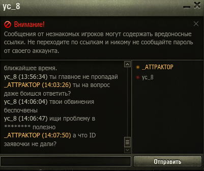 Добрый день. Сегодня написал два сообщения в чате о поиске взвода с разницей во времени около минуты. Принял приглос во взод, начался бой и фиолетовое сообщение в чате, что я забанен за флуд... аж на сутки! Писать ни в чат клана, ни в чат взвода и т.п. теперь не могу. Если честно нахожусь в замешательстве. Модер там предупреждения в общем чате за нарушения выписывает, а мне бан. Сразу скажу - из меня флудер как из вас балерина. Знаю, что модеру на меня ***, как и разрабам, вопрос в том есть ли возможность снять бан. Кто может подскажите пожалуйста. Если честно очень неприятно такое отношение. Заранее благодарю.