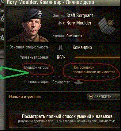 Здравствуйте, уважаемые форумчане, возник такой вопрос, если на любом из танкистов кликнуть правой кнопкой мыши, появляется меню в нем указаны проценты осн. специальности, умения изученные, и есть такая графа "Модификаторы" стоит прочерк и написано при основной специальности не имеет, что вообще это за модификаторы?