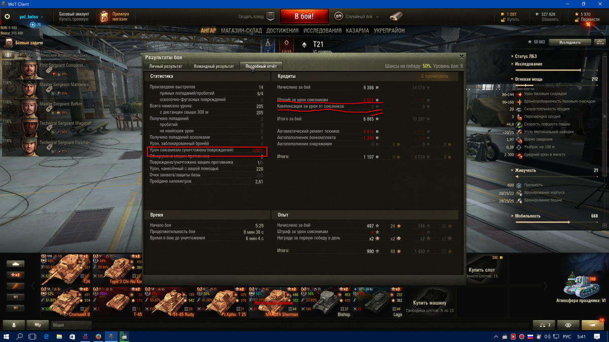 Извините - наверно я не в тот раздел пишу. Вот реплей http://wotreplays.ru/site/9094282?secret=9b15e4113012f899bb1d2c10de5f0390 Вкраце я там расстрелял "союзника" на Т-34 который испортил игру союзной арте и меня впервые в этой игре забанили. Я то вину свою понимаю - мог бы и поаккуратнее "союзнику" малину испортить. Но раз уж меня забанили, то нельзя ли и "союзнику" что-нибудь накинуть? ... ато обидно как-то
