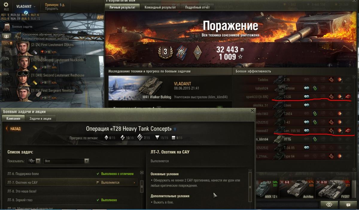 Не была засчитана личная боевая задача САУ-15 для T28 HTC. ОСНОВНАЯ ЗАДАЧАПопасть в топ-3 игроков обеих команд по опыту и урону. Нанести не менее 2000 урона.Второстепенное заданиеВыжить в бою.Было выполнено только основное условие, но задача не была засчитана.Скриншоты:
