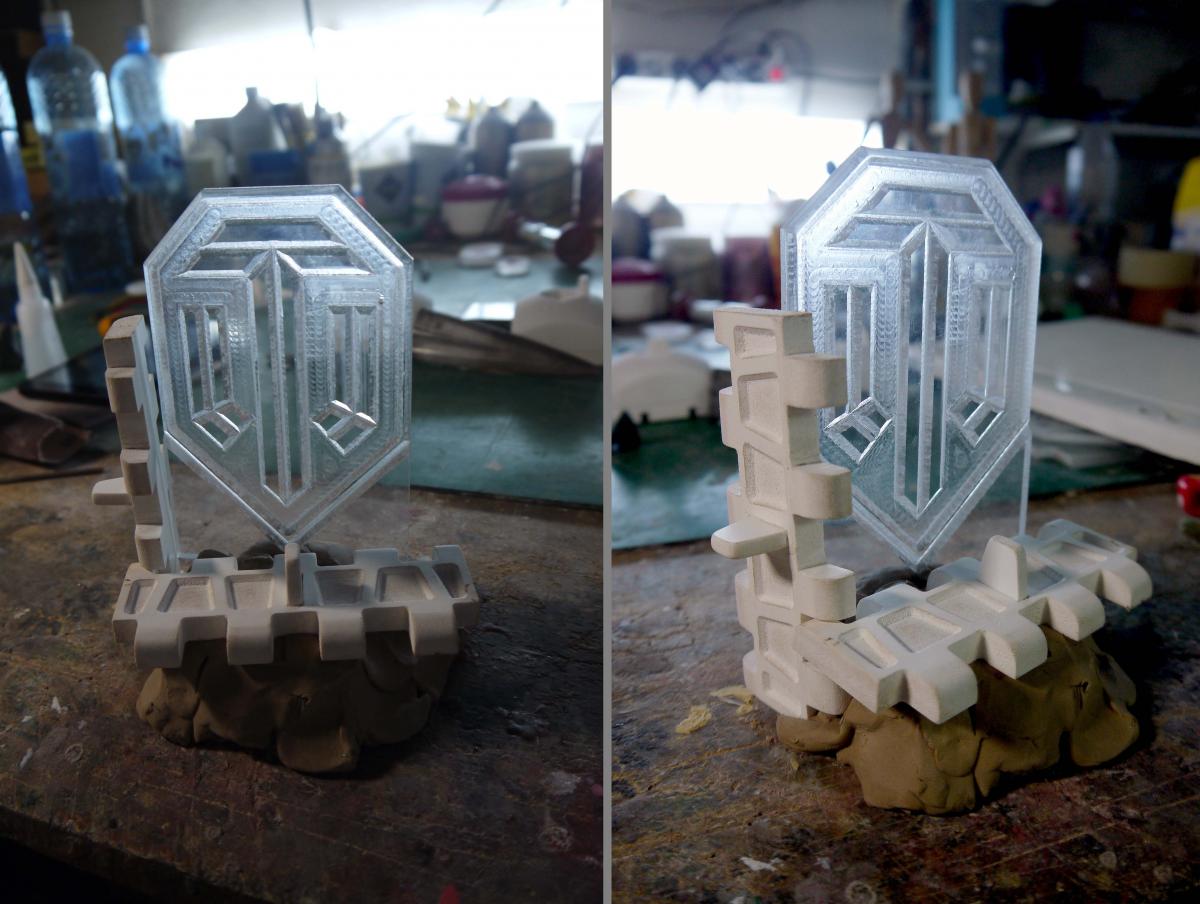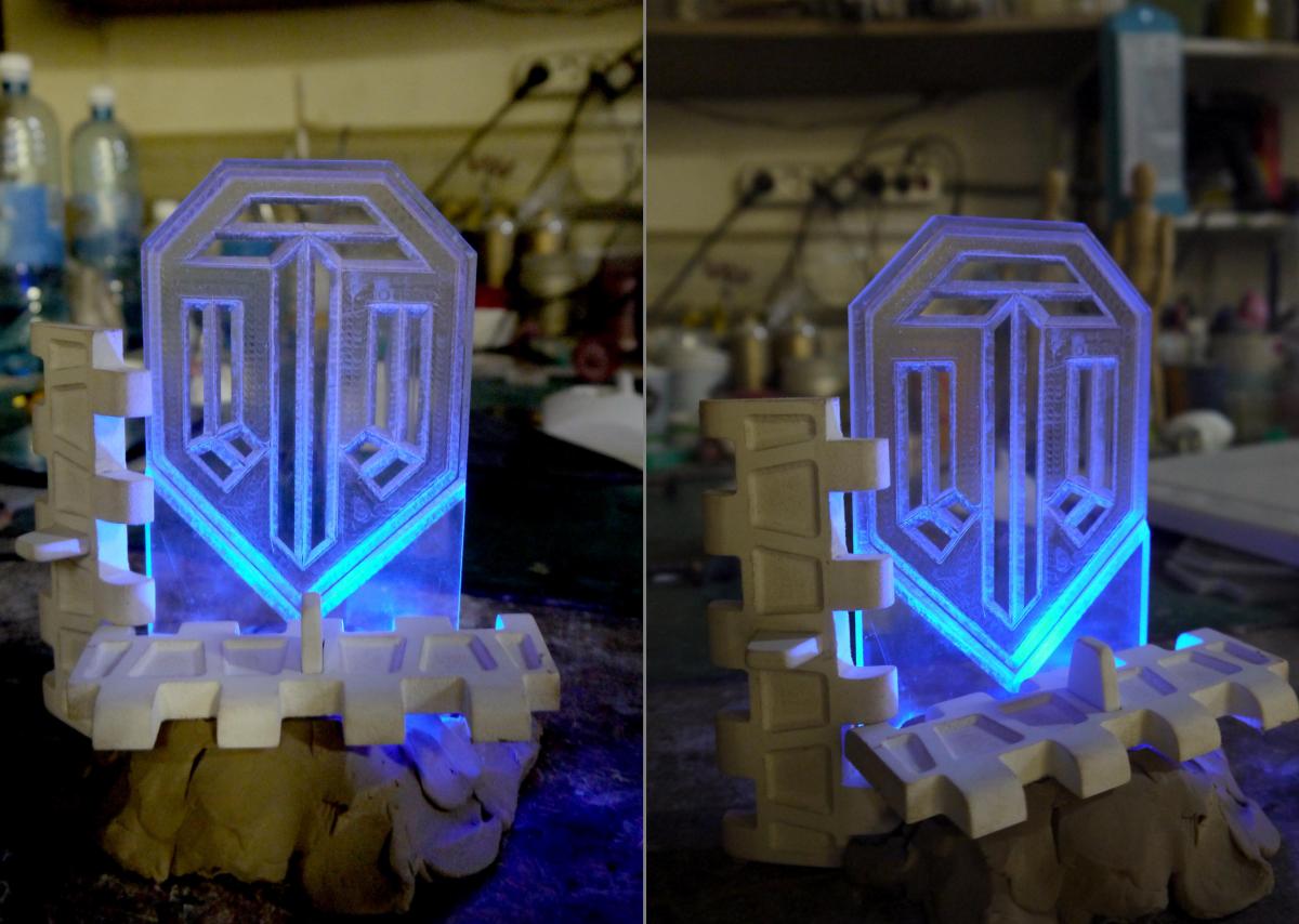 Приветствую... В общем, товарищу, делаю подарочный сувенир, он же ночник. Так как он ярый танкист, то делаю по фану, а именно по танкам :-) Сделал некоторую заготовку, но немного затупил с композицией. Помогите определиться, как будет интереснее? Сам склоняюсь к варианту, который подсветил, синей подсветкой. Там, где пластилин-будет имитация земли, с использованием пигментов, чтоб получить грязь. Траки-буду делать с напылением металл. пудры. Есть два варианта: сталь и алюминий. (видно на одной из фоток. сталь-портемнее, алюминий-светлее) Остановился все таки на стали, её можно по настоящему заржавить, чтоб была правильная ржавчина. В общем, вот варианты, попрошу высказаться, по существу, что интереснее смотрится? Ну и можете что то свое подсказать :-) Буду рад идеям...