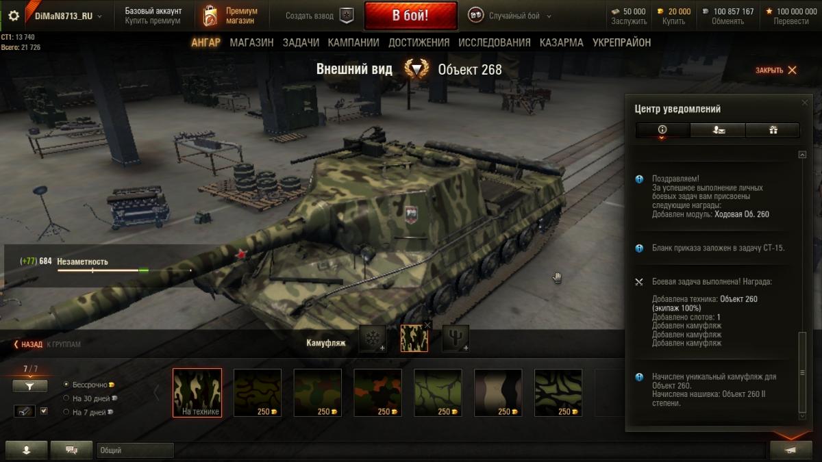 Не нашел раздел для багов в общем тесте, так что напишу сюда. В 9.20.1 с танками за ЛБЗ дают камуфляж для нации. Для немцев и амеров камуфляж можно поставить на любую технику. А вот с советским проблема: можно поставить только на об.260.