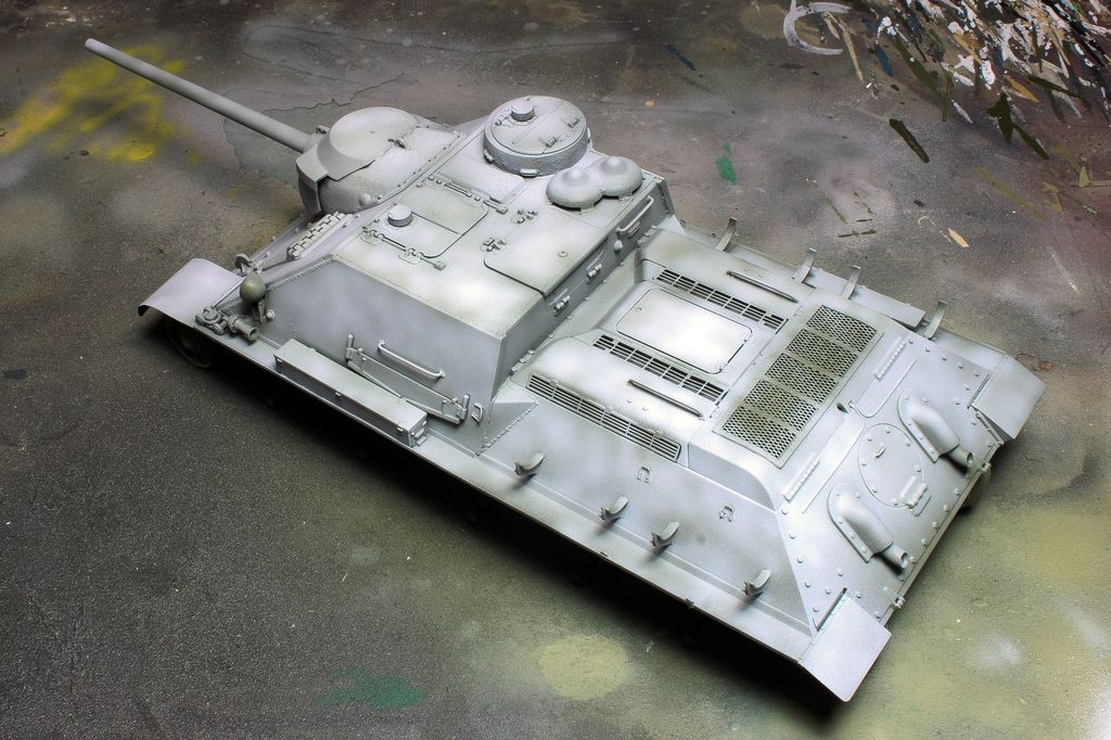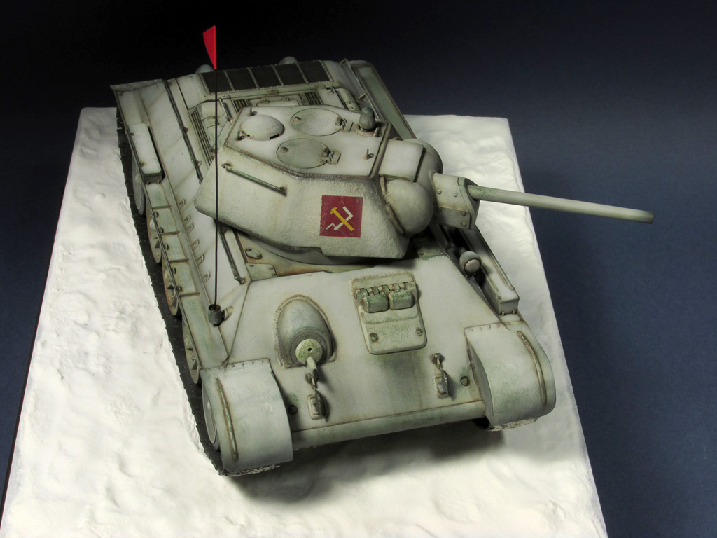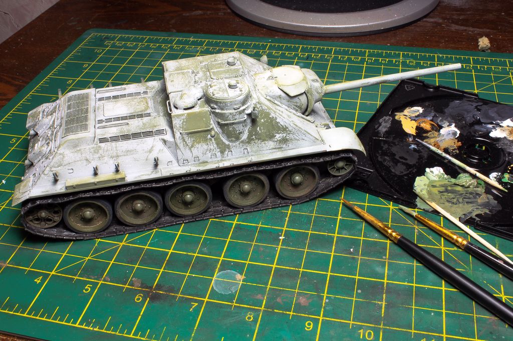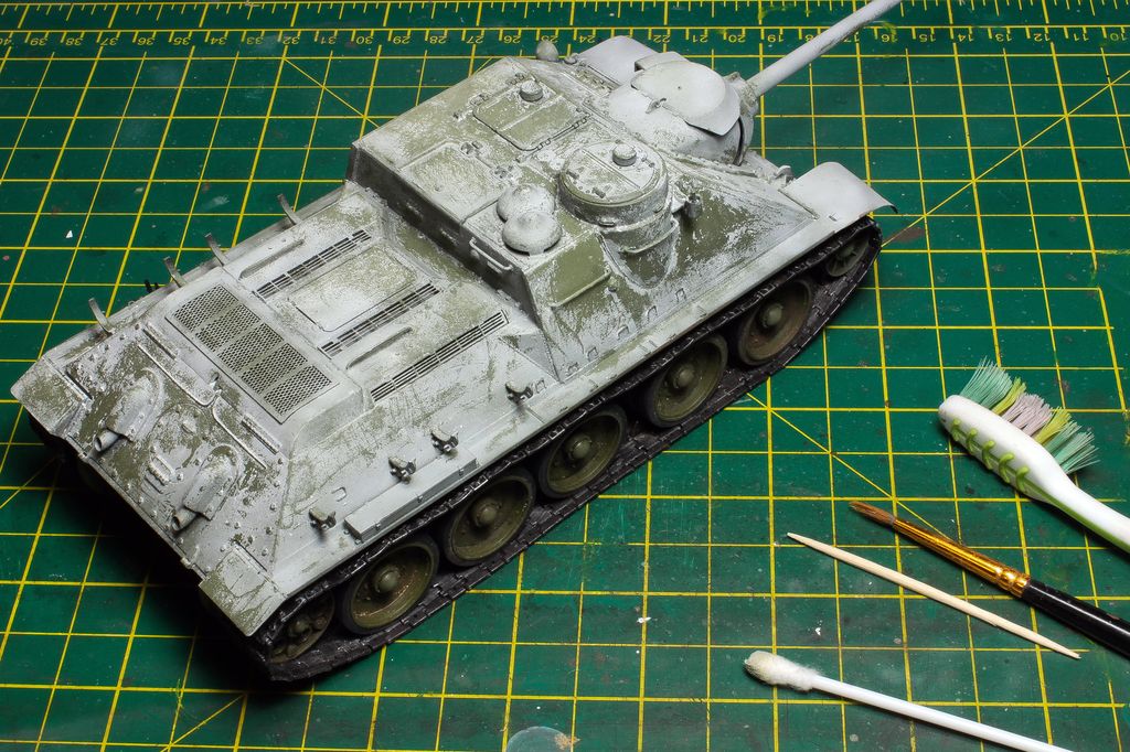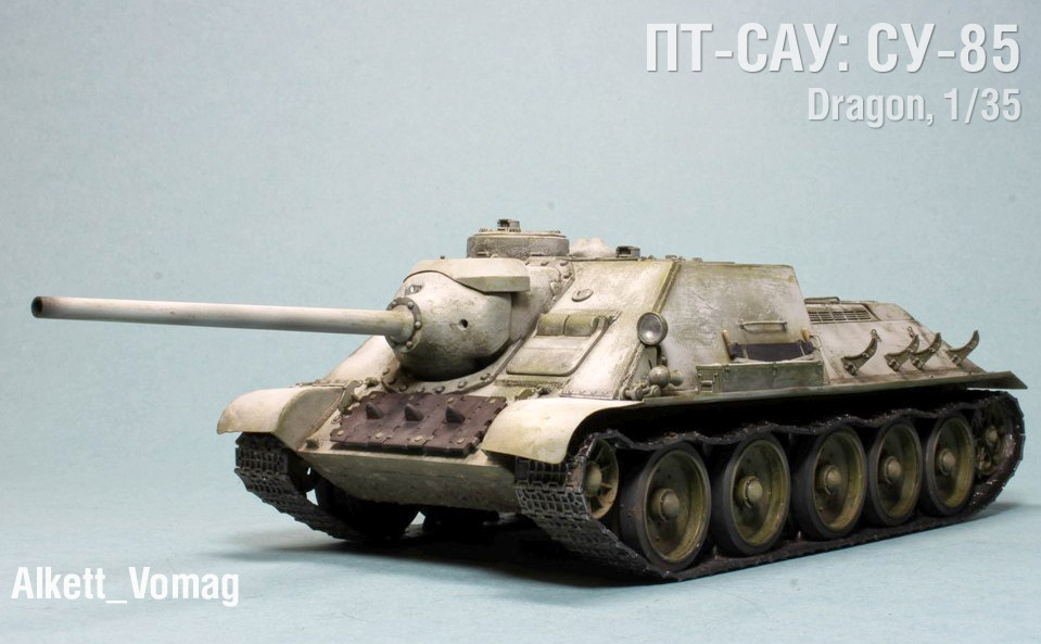 http://cdn-frm-eu.wargaming.net/wot/ru/uploads/monthly_06_2015/post-4861458-0-77097200-1434717334_thumb.jpg В этой статье наш постоянный автор Alkett_Vomag расскажет о работе над моделью советской самоходки СУ-85М в зимнем камуфляже. Модель от фирмы Dragon, масштаб 1/35. Постараемся максимально подробно описать её сборку и покраску. Вы узнаете: А) О сборке пластиковой модели с использованием фототравления (фотоэтчеда) и минимальных доработках. Б) Об окраске в зимний камуфляж с применением т.н. «метода лака для волос». Постараемся быть не сильно скучными http://cdn-frm-eu.wargaming.net/4.3/style_emoticons/wot/Smile_glasses.gif 1 http://cdn-frm-eu.wargaming.net/wot/ru/uploads/monthly_06_2015/post-4861458-0-79733900-1434717559_thumb.jpg Немного теории. Фототравление для моделей (Photo Etched) представляет собой тонкую металлическую плату, на которой методом химического травления вырезаны мелкие детали. Их используют для замены на модели недостаточно копийных деталей. Сборка модели с использованием фототравления может вызвать у начинающих моделистов определенные трудности. (На фото корма немецкой ПТ САУ Jagdpanzer IV. На пластиковой модели хорошо видны все фототравленые детали, которые установлены вместо пластиковых.) 2 http://cdn-frm-eu.wargaming.net/wot/ru/uploads/monthly_06_2015/post-4861458-0-43103100-1434717782_thumb.jpg Фототравление можно собирать двумя способами- клеить и паять. Мы расскажем о сборке на клее, она проще для новичков. Основные инструменты при работе с фототравлением - острый цанговый нож и супер-клей (лучше в виде геля). Цанговый нож наиболее удобен, т.к. его лезвие имеет очень тонкий и острый кончик. Отделяем травленую деталь от рамки-перерезаем «усики» которыми она крепится к плате. (На фото плата фототравленых замков для крепления инструмента на броне танка). При необходимости, место отреза зачистим надфилем. На модель детали монтируются пинцетом. 3 http://cdn-frm-eu.wargaming.net/wot/ru/uploads/monthly_06_2015/post-4861458-0-82038400-1434717944_thumb.jpg Иногда приходится кое-какие детали изготовить самостоятельно. Например, у этой модели передние грязевые щитки сделаны из жести от банки с колой (банка разрезается, жесть выравнивается, и из неё можно «кроить» детали). Пластиковые грязевые щитки из набора выглядят очень плохо. Производитель хотел имитировать их «помятость», но получилось, мягко говоря, не очень. При изготовлении жестяных щитков, размеры можно снять с пластиковых, начертить кончиком ножа выкройку на жести и вырезать. Готовый щиток клеим к пластику на супер-клей. 4 http://cdn-frm-eu.wargaming.net/wot/ru/uploads/monthly_06_2015/post-4861458-0-13618900-1434718178_thumb.jpg Так же были заменены пластиковые поручни на металлические. Для чего это делается? Пластиковые поручни в своем сечении не круглые. Это происходит из-за стыка половинок пресс-форм. Проволочные же поручни идеально похожи на настоящие и имеют круглое сечение. Переделаны петли на броне, пластиковые были не очень похожи. 5 http://cdn-frm-eu.wargaming.net/wot/ru/uploads/monthly_06_2015/post-4861458-0-21013500-1434718174_thumb.jpg Маске орудия и основанию командирской башенки можно придать фактуру литья. На заводах их лили в земляную форму, поверхность у них была шероховатая. Можно пройтись жесткой кистью, смоченной в растворе тамиевской шпаклевки, разбавленной тамиевским супертекучим клеем или 646,647,648 растворителем. Консистенция раствора должна быть чуть жиже сметаны. Эту кашицу можно нанести на детали модели для более фактурного внешнего вида. Главное – не забывать об аккуратности. 6 http://cdn-frm-eu.wargaming.net/wot/ru/uploads/monthly_06_2015/post-4861458-0-93869200-1434718178_thumb.jpg На модели имитация сварки ко