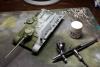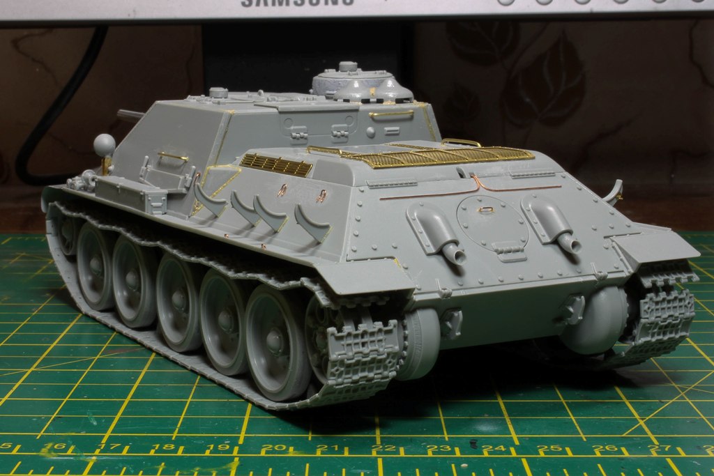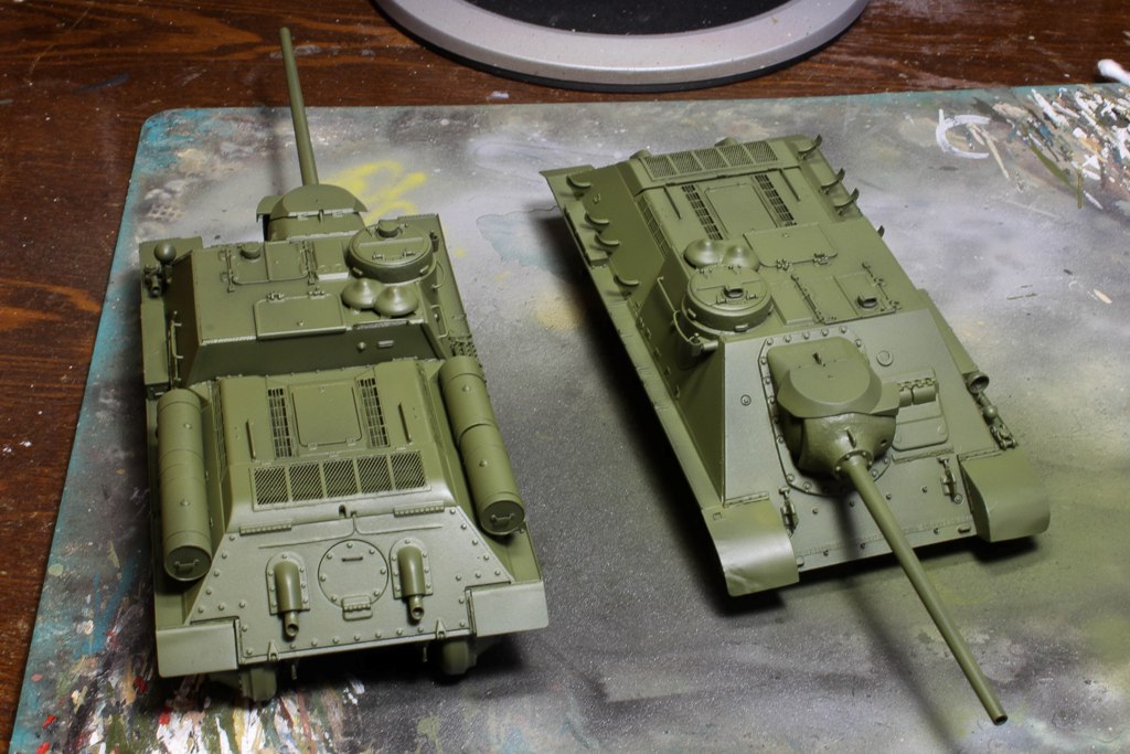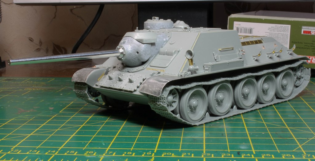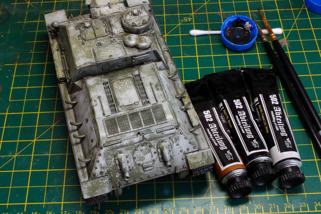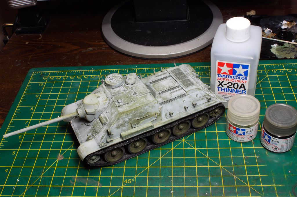 http://cdn-frm-eu.wargaming.net/wot/ru/uploads/monthly_06_2015/post-4861458-0-77097200-1434717334_thumb.jpg В этой статье наш постоянный автор Alkett_Vomag расскажет о работе над моделью советской самоходки СУ-85М в зимнем камуфляже. Модель от фирмы Dragon, масштаб 1/35. Постараемся максимально подробно описать её сборку и покраску. Вы узнаете: А) О сборке пластиковой модели с использованием фототравления (фотоэтчеда) и минимальных доработках. Б) Об окраске в зимний камуфляж с применением т.н. «метода лака для волос». Постараемся быть не сильно скучными http://cdn-frm-eu.wargaming.net/4.3/style_emoticons/wot/Smile_glasses.gif 1 http://cdn-frm-eu.wargaming.net/wot/ru/uploads/monthly_06_2015/post-4861458-0-79733900-1434717559_thumb.jpg Немного теории. Фототравление для моделей (Photo Etched) представляет собой тонкую металлическую плату, на которой методом химического травления вырезаны мелкие детали. Их используют для замены на модели недостаточно копийных деталей. Сборка модели с использованием фототравления может вызвать у начинающих моделистов определенные трудности. (На фото корма немецкой ПТ САУ Jagdpanzer IV. На пластиковой модели хорошо видны все фототравленые детали, которые установлены вместо пластиковых.) 2 http://cdn-frm-eu.wargaming.net/wot/ru/uploads/monthly_06_2015/post-4861458-0-43103100-1434717782_thumb.jpg Фототравление можно собирать двумя способами- клеить и паять. Мы расскажем о сборке на клее, она проще для новичков. Основные инструменты при работе с фототравлением - острый цанговый нож и супер-клей (лучше в виде геля). Цанговый нож наиболее удобен, т.к. его лезвие имеет очень тонкий и острый кончик. Отделяем травленую деталь от рамки-перерезаем «усики» которыми она крепится к плате. (На фото плата фототравленых замков для крепления инструмента на броне танка). При необходимости, место отреза зачистим надфилем. На модель детали монтируются пинцетом. 3 http://cdn-frm-eu.wargaming.net/wot/ru/uploads/monthly_06_2015/post-4861458-0-82038400-1434717944_thumb.jpg Иногда приходится кое-какие детали изготовить самостоятельно. Например, у этой модели передние грязевые щитки сделаны из жести от банки с колой (банка разрезается, жесть выравнивается, и из неё можно «кроить» детали). Пластиковые грязевые щитки из набора выглядят очень плохо. Производитель хотел имитировать их «помятость», но получилось, мягко говоря, не очень. При изготовлении жестяных щитков, размеры можно снять с пластиковых, начертить кончиком ножа выкройку на жести и вырезать. Готовый щиток клеим к пластику на супер-клей. 4 http://cdn-frm-eu.wargaming.net/wot/ru/uploads/monthly_06_2015/post-4861458-0-13618900-1434718178_thumb.jpg Так же были заменены пластиковые поручни на металлические. Для чего это делается? Пластиковые поручни в своем сечении не круглые. Это происходит из-за стыка половинок пресс-форм. Проволочные же поручни идеально похожи на настоящие и имеют круглое сечение. Переделаны петли на броне, пластиковые были не очень похожи. 5 http://cdn-frm-eu.wargaming.net/wot/ru/uploads/monthly_06_2015/post-4861458-0-21013500-1434718174_thumb.jpg Маске орудия и основанию командирской башенки можно придать фактуру литья. На заводах их лили в земляную форму, поверхность у них была шероховатая. Можно пройтись жесткой кистью, смоченной в растворе тамиевской шпаклевки, разбавленной тамиевским супертекучим клеем или 646,647,648 растворителем. Консистенция раствора должна быть чуть жиже сметаны. Эту кашицу можно нанести на детали модели для более фактурного внешнего вида. Главное – не забывать об аккуратности. 6 http://cdn-frm-eu.wargaming.net/wot/ru/uploads/monthly_06_2015/post-4861458-0-93869200-1434718178_thumb.jpg На модели имитация сварки ко