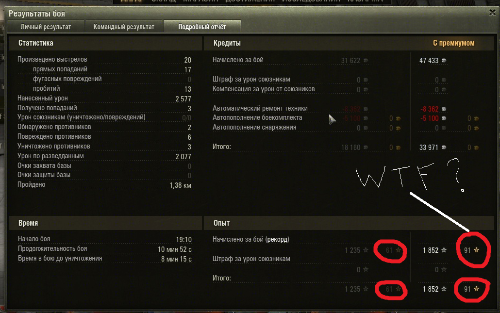 Кто в курсе что означают циферки в послебоевой статистике в правом нижнем углу возле опыта: http://cdn-frm-eu.wargaming.net/wot/ru/uploads/monthly_11_2012/post-4808238-0-80967900-1352133398_thumb.png Похоже на какой то коэффициент, но разрабы говорили что коэффициент не применяется... з.ы.: сори если баян