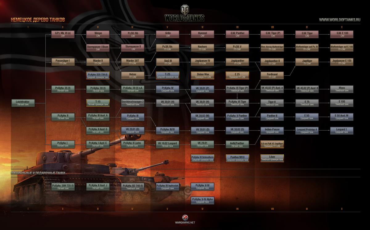 Решил создать тему касательно Немецкого дерева развития танков (патч 0.8.9), лично катал на всех немцах 5+ уровней. Интересно ваше мнение: Кого бы вы постаили на 1е место, и какие танки самые неинтересные? На мой взгляд: Лучшие танки немецкой ветки, в порядке убывания имбовости :great: : E 25 Waffenträger auf E 100 VK 28.01 Rhm.-Borsig Waffenträger Jagdpanther II E 50 E 100 E 75 E 50 Ausf. M Waffenträger auf Pz. IV Tiger II Leopard 1 Indien-Panzer ТОП худших немецких танков: :hiding: Pz.Sfl. IVc Pz.Sfl. V Maus Panther/M10 Aufklärungspanzer Panther
