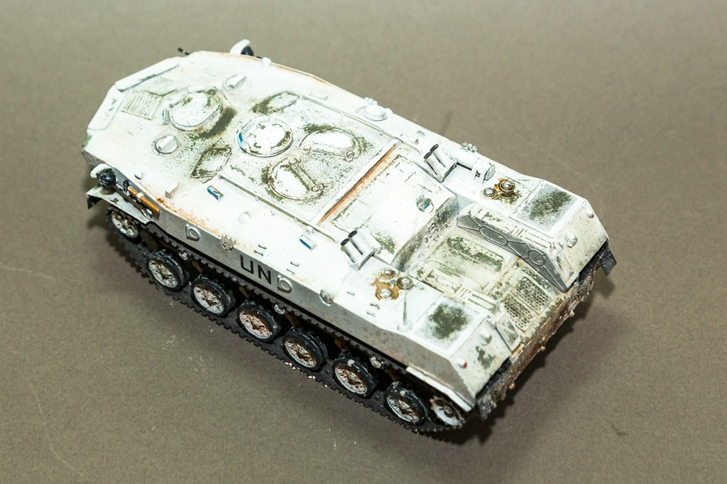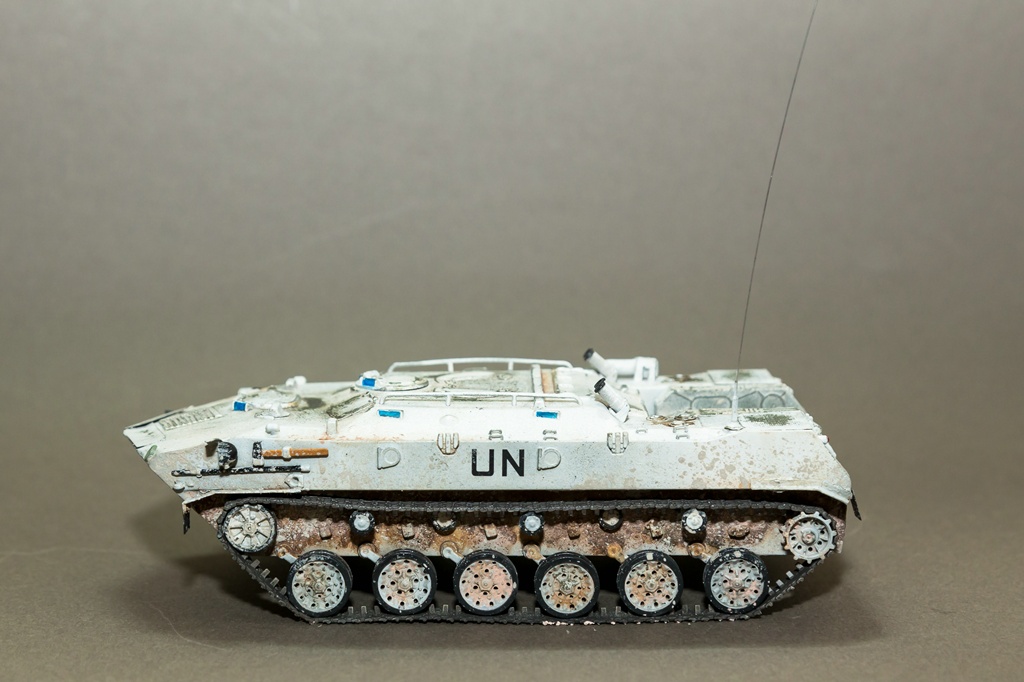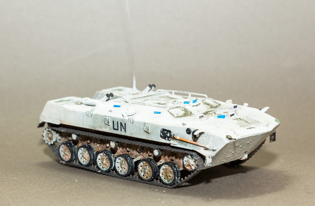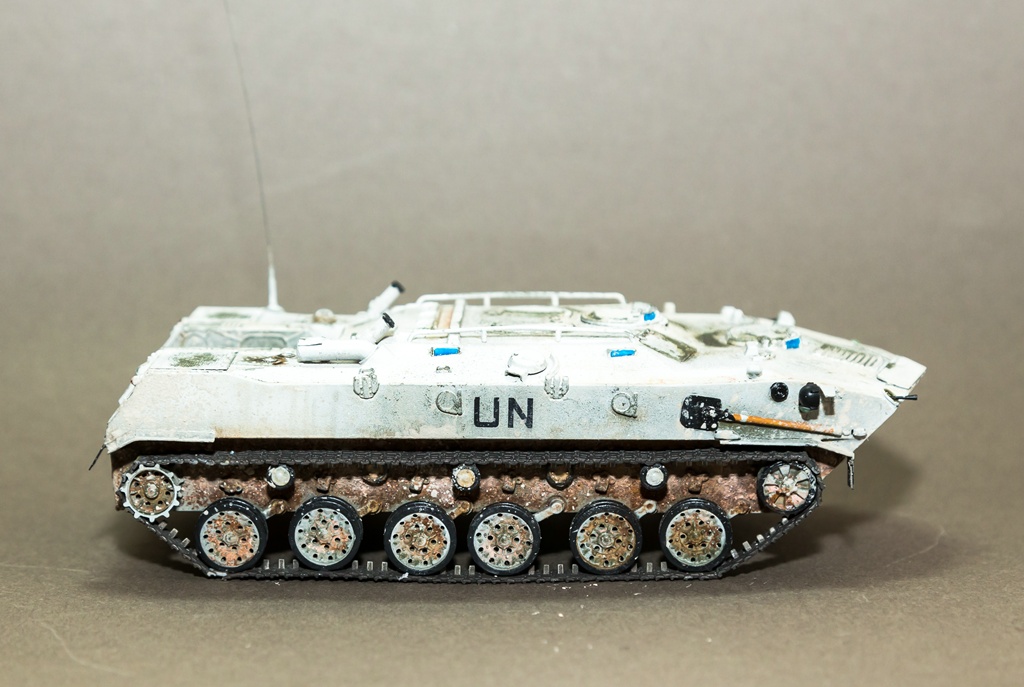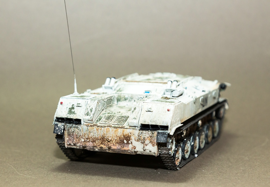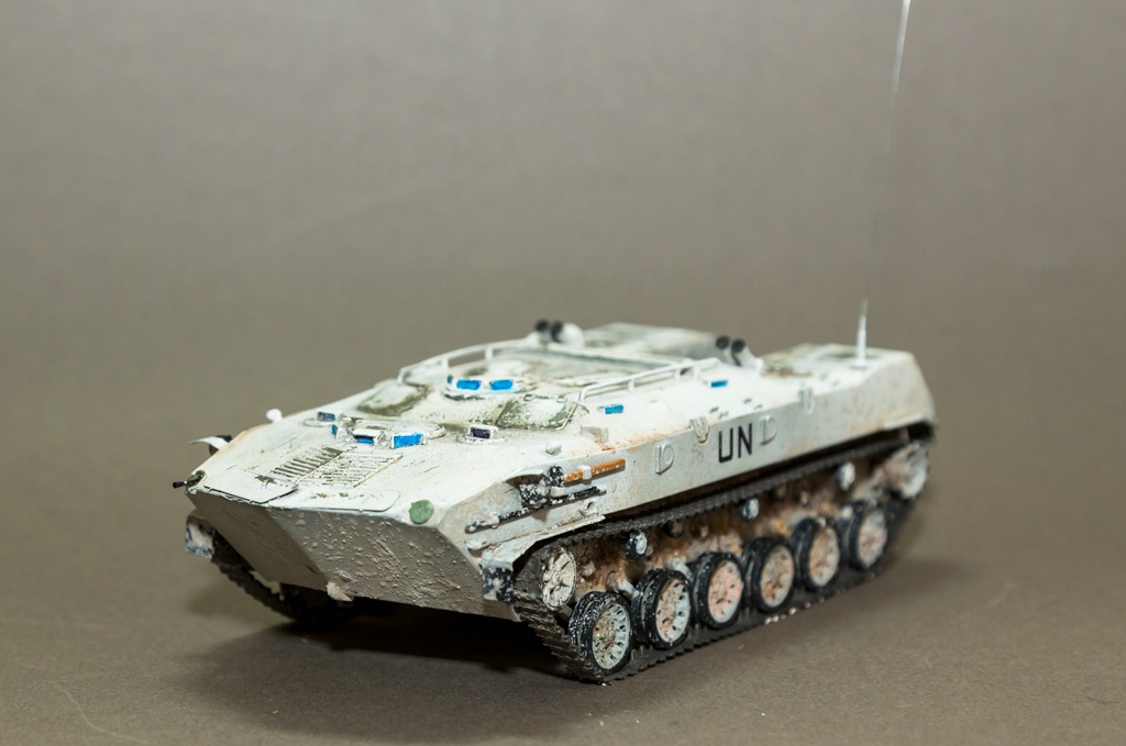 Приветствую всех. Решил снова показать свое творчество. В этот раз модель не собиралась заново, а переделывалась из уже собранной. Когда-то была куплена модель от фирмы "Алангер", собрана и покрашена. Сборка и покраска, получились отвратительными (фото как было, в конце), и вот в один из дней решил привести модель в более смотрибельный вид. Модель была отмыта, добавлены некоторые элементы из пивжести. В качестве варианта окраски - выбрал бтр из состава миротворческих сил. Модель покрашена акрилом от "тамии", смывка от "АММО", грязь - пигменты МХП и пастель. Результат перед вами. Как всегда готов выслушать замечания и критику...