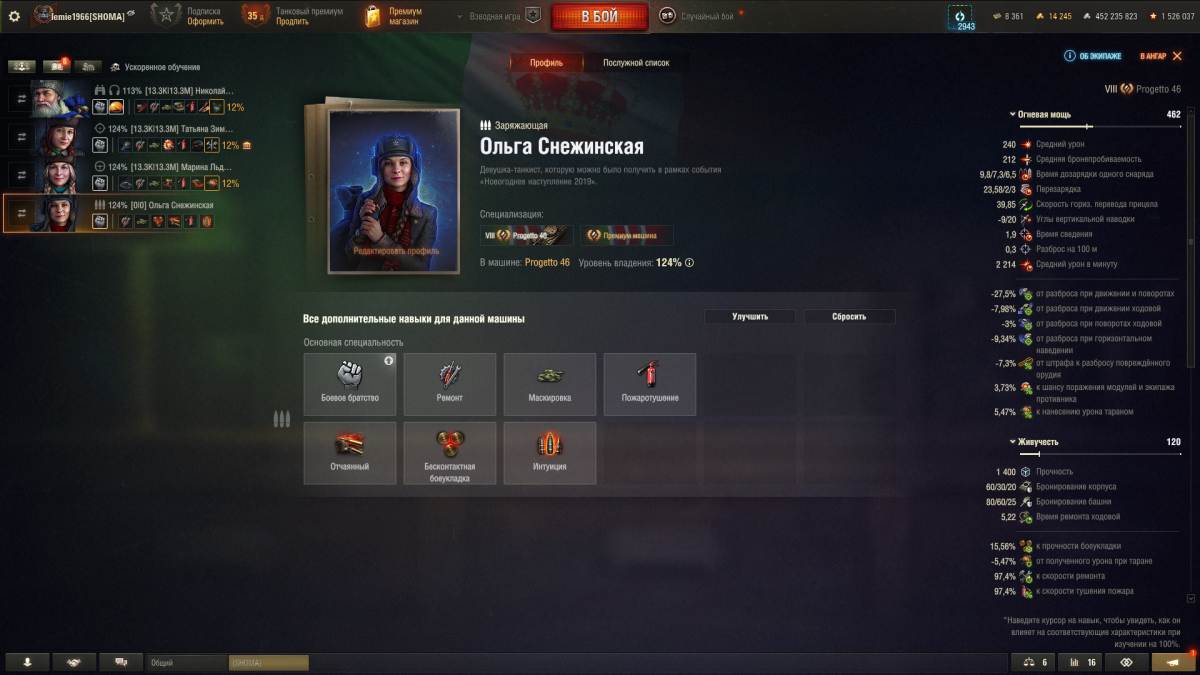 добрый день! у проги 46 заряжающему доступно всего 7 перков, у остальных членов экипажа больше. эти 7 уже изучены, куда девать опыт заряжающего?