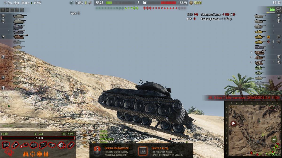 Танк завис в воздухе и просто вращался на песчаной реке после съезда с годы в квадрате G7 + в 9.15 на рудниках танк при съезде с горы в квадрате D 5-6 разбивается полностью, чего в 9.14 небыло