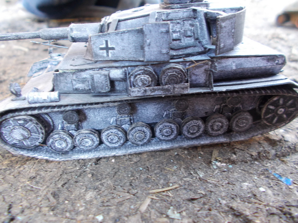 Всем всем пламенный привет!http://cdn-frm-eu.wargaming.net/4.3/style_emoticons/wot/Smile_Default.gif Решил выставить на показ свою 3-ю по счету работу.Сделанная еще в далеком 2013-ом... Представляю к вашему вниманию Pz kpfw lV http://cdn-frm-eu.wargaming.net/wot/ru/uploads/monthly_04_2015/post-7605631-0-93378400-1430398701_thumb.jpg Модель собиралась еще не вполне сформировавшимися руками-клешнями,http://cdn-frm-eu.wargaming.net/4.3/style_emoticons/wot/Smile_teethhappy.gif поэтому много косяков.Все с чего-то да начиналиhttp://cdn-frm-eu.wargaming.net/4.3/style_emoticons/wot/Smile_glasses.gif Модель делалась полностью по инструкции, никаких изменений в модель не вводилось. Модель была распечатана на черно-белом принтере! Дополнительное фото под спойлером: Хотел выложить модель тетрарха, но завалы на работе все испортили!http://cdn-frm-eu.wargaming.net/4.3/style_emoticons/wot/Smile-angry.gifТетрарху осталось приделать гусеницы. Оставьте, пожалуйста, отзыв по поводу гусениц, какие лучше: 1 вариант (сделанный из отдельных траков): 2 вариант (сделанный из сплошной полоски бумаги): Извините за ужасное фото гусениц сделал только что, создавая тему