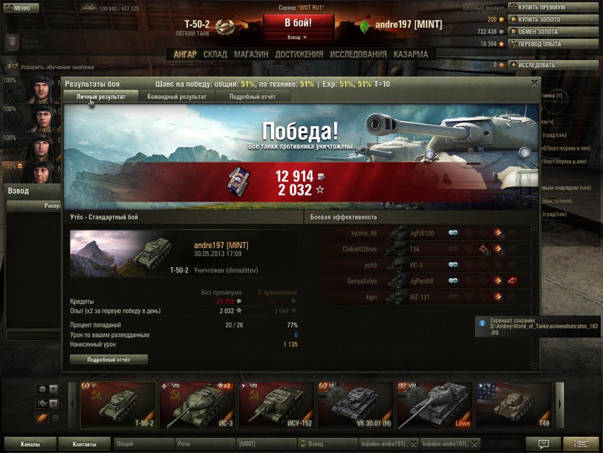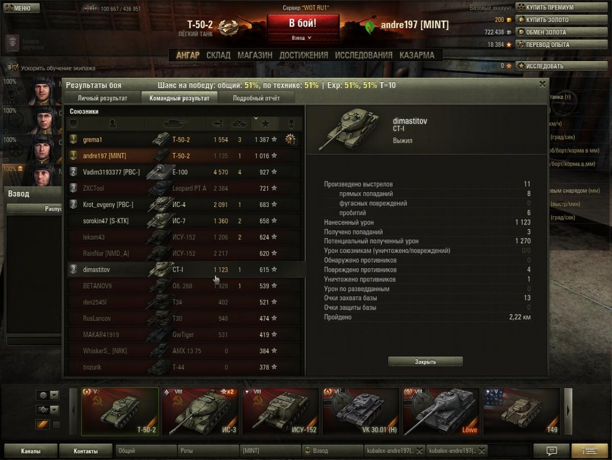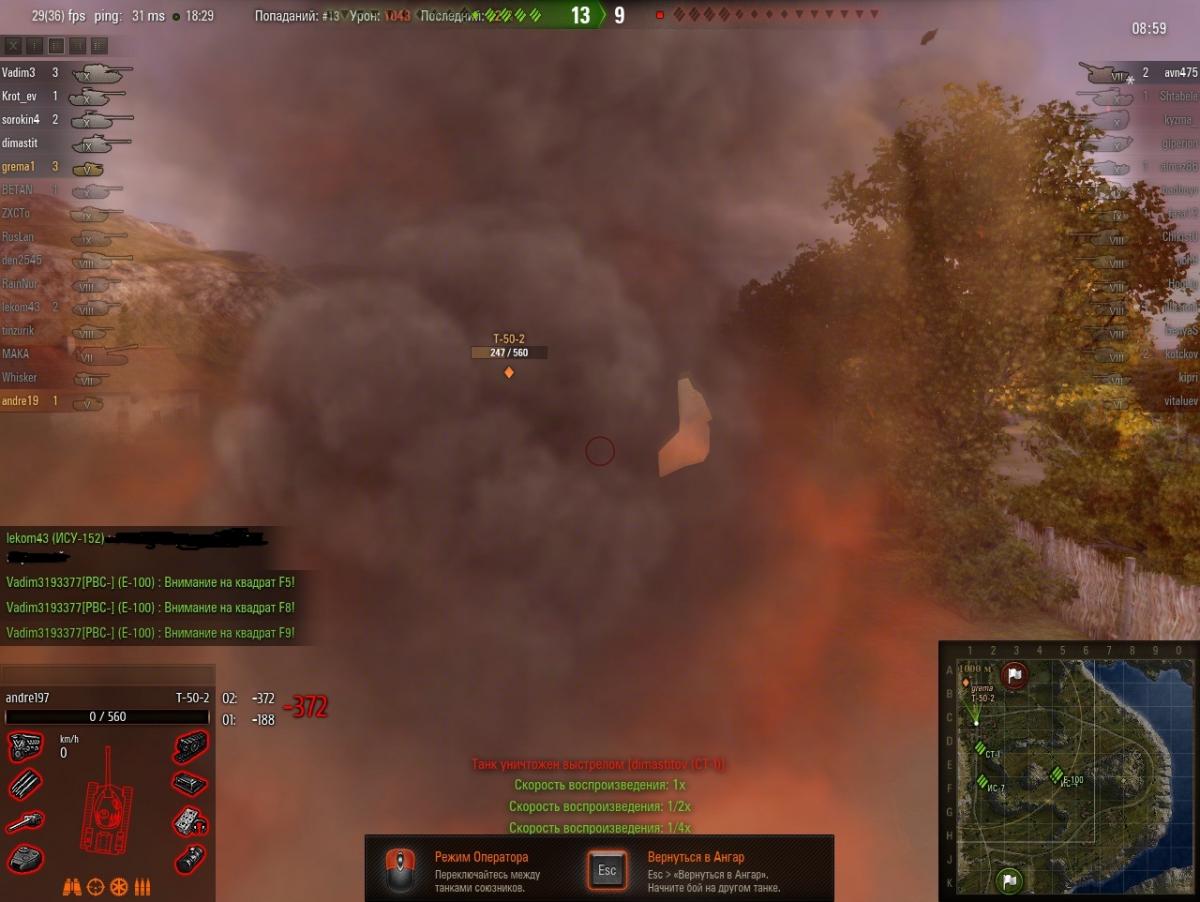 Здравствуйте, форумчане. Сегодня играл на т 50 - 2 с другом и со мной произошел неприятный случай: союзный СТ-1 выстрелил в меня (рядом из врагов никого не было!) и убил. Расстроился не сильно - оленей всегда хватало, но почему у него в статистике не написано про тимдамаг и тимкилл. На скринах - отсутствие сведений о нанесении мне дамага, факт о моем убийстве(общая картинка), момент убийства, скрин из игры, где видно, что у него 0!!! фрагов(стало). http://wotreplays.ru/site/960365#team - вот ссылка на реплей