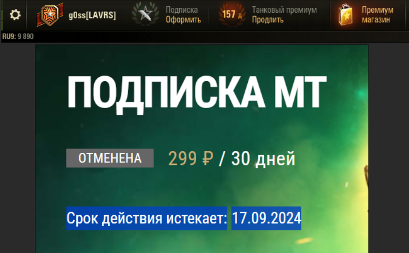 Продлил )активировал) минут 30 назад подписку. Сыграл 1 бой, получил голду по итогу. Ушёл в следующий бой, вышел из него. На подписке надпись "Ошибка" и голды по итогам боя нет(( А так планировал поиграть пофармить вечером.
