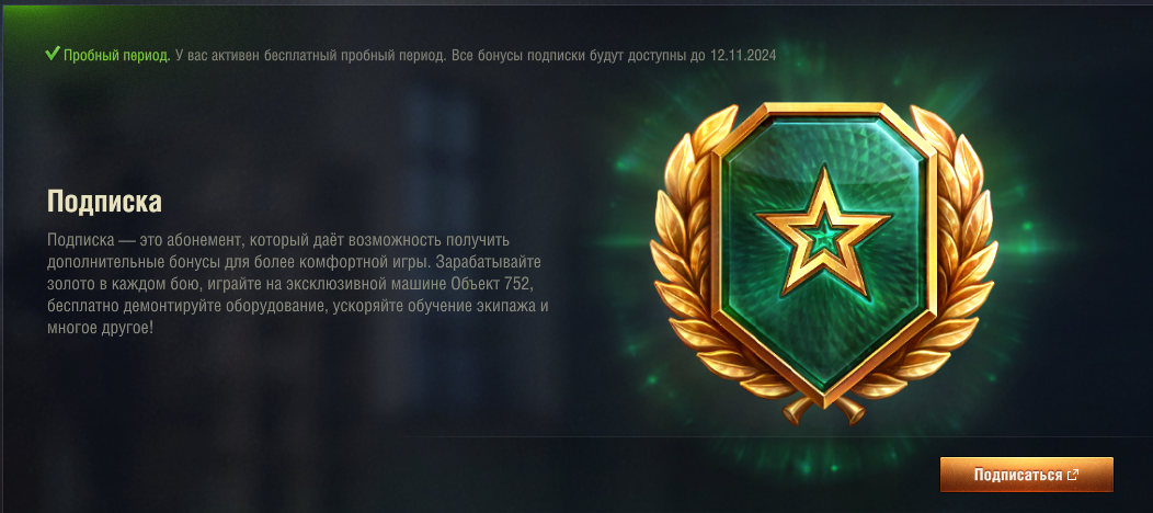 Всем привет. Вопрос таков: я оформил сегодня подписку. Как и должно было быть у меня списались 299 руб. Но мгновение спустя, я заметил в игре горящую зеленую звезду (типо подписка есть), а рядом кнопку "Оформить". Я подумал, что это за дичь, навел мышь значит на это дело и заметил чудо во плоти! Подписка у меня пробная активировалась, к тому же бесплатная до 12.11.2024! Народ, кто знает, что за прикол, какого кувшина у меня деньги списались раз подписка бесплатная? В саппорт письма не отправляются почему-то.