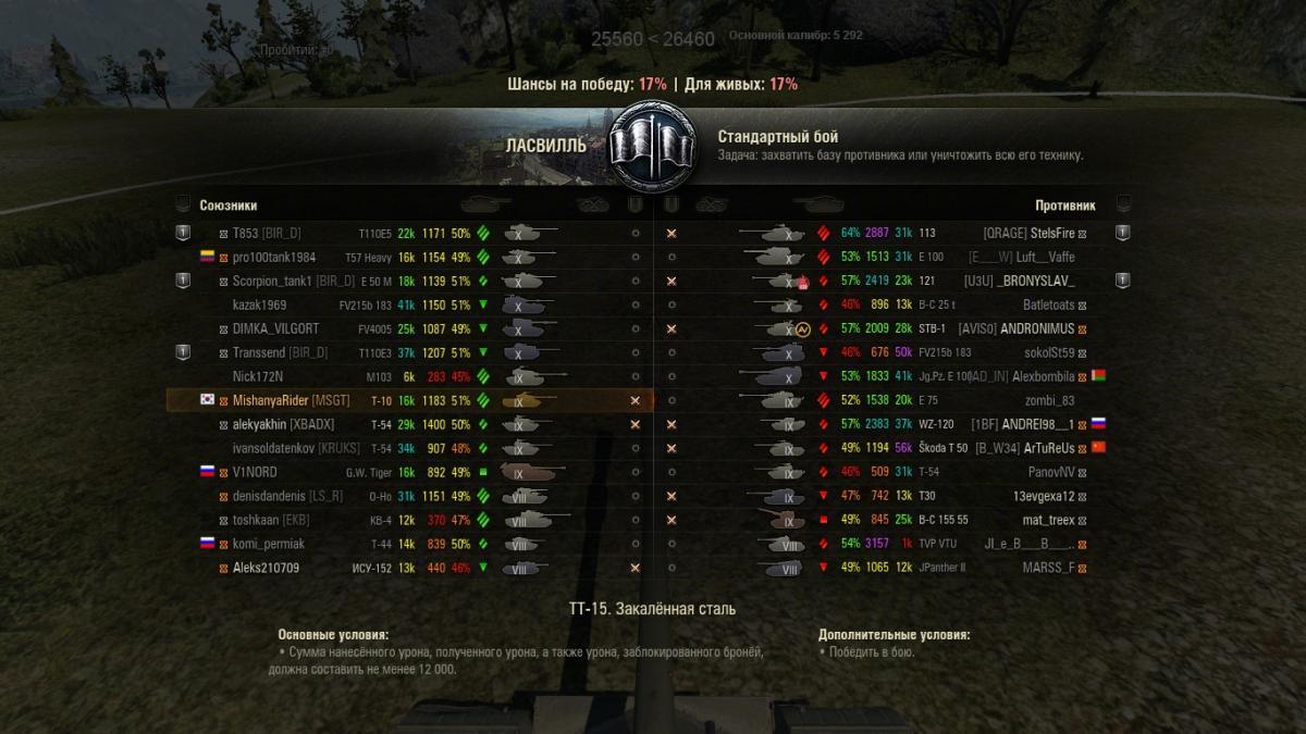 Доброе утро! Сегодняшний день начался с подставного боя , собственно , было два боя с данными игроками наш взвод тяжей с артой с 0 урона и их взвод ) http://cdn-frm-eu.wargaming.net/wot/ru/uploads/monthly_06_2015/post-1950410-0-80537200-1434334011_thumb.jpg Первый бой мы отыграли довольно быстро и хорошо ) Второй бой попадаю так же с этим взводом , но уже против... Сначала я даже и не понял , почему наши тяжи стоят в кругу , как оказалось потом это был ориентир для арты , которая выполняла лбз... http://cdn-frm-eu.wargaming.net/wot/ru/uploads/monthly_06_2015/post-1950410-0-99576500-1434334268_thumb.jpg http://wotreplays.ru/site/5659281#team , сам реплей , если конечно что-то будет видно. Собственно как и далее... Аккаунт данного игрока тоже весьма со странными числами , хотя может и сам набил на 100% утверждать не буду http://cdn-frm-eu.wargaming.net/wot/ru/uploads/monthly_06_2015/post-1950410-0-57635800-1434334497_thumb.jpg