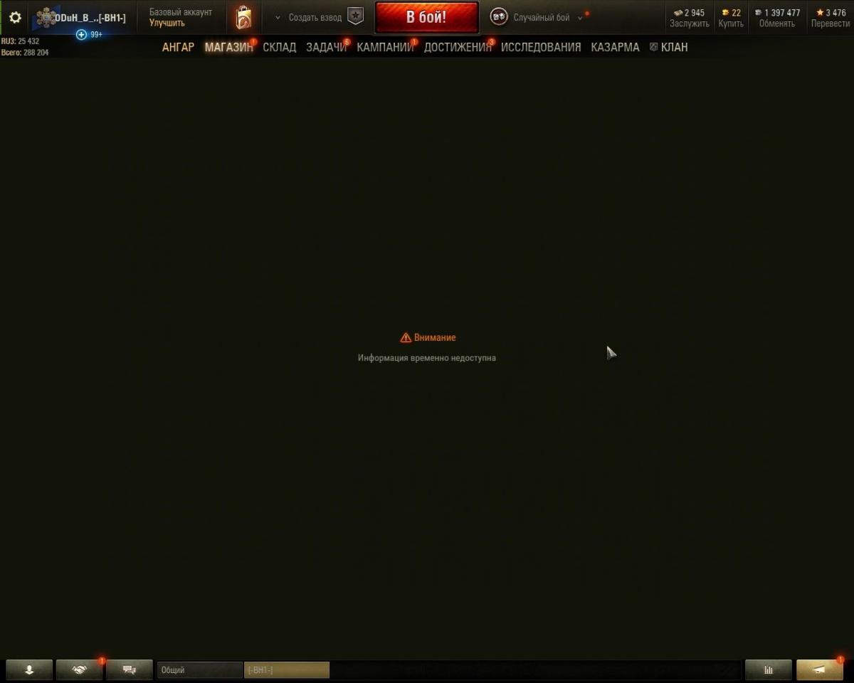 Как исправить эту ошибку ?Она ведь третий патч тянется .Вроде видел ответ от модераторов , что нужно доп файл скачивать , но не сохранил вкладку .Или нужно заплатить денежек за облачный сервис для доступа к укрепу . магазину ....ой не знаю что еще отвалилось .Лишний раз боюсь мышкой в ангаре пошевелить- вдруг из клиента выкинет ( рофл ) .Спасибо за помощь .