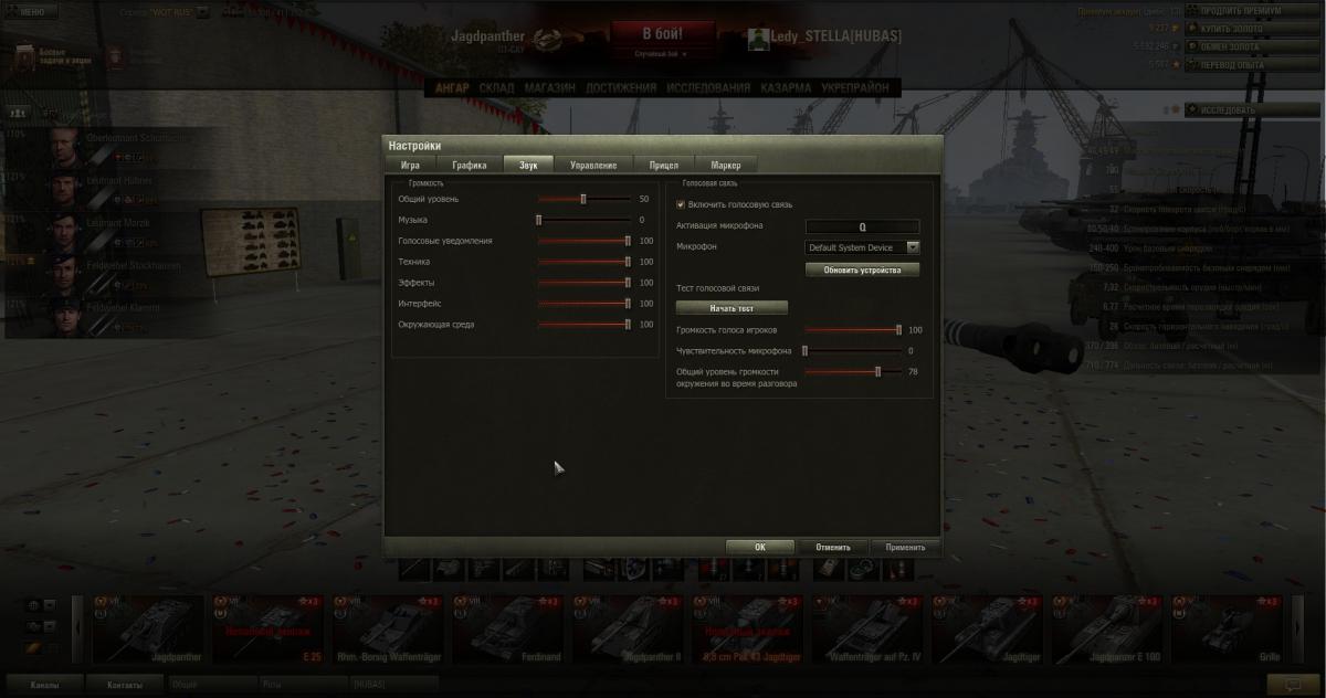 Вопрос в следующем, куда у меня пропали голосовые уведомления "в бой", "рикошет", "попадание" и т.д. ? Зашла в настройки, там где у меня стоили "национальные", а у меня вообще нет этой графы. Вообще весь бой только звук двигателя и выстрелы из пушки. http://cdn-frm-eu.wargaming.net/wot/ru/uploads/monthly_08_2014/post-11859920-0-30378100-1407422417_thumb.jpg Пы.Сы. : Моды стоят ПроТанки только прицел и зум