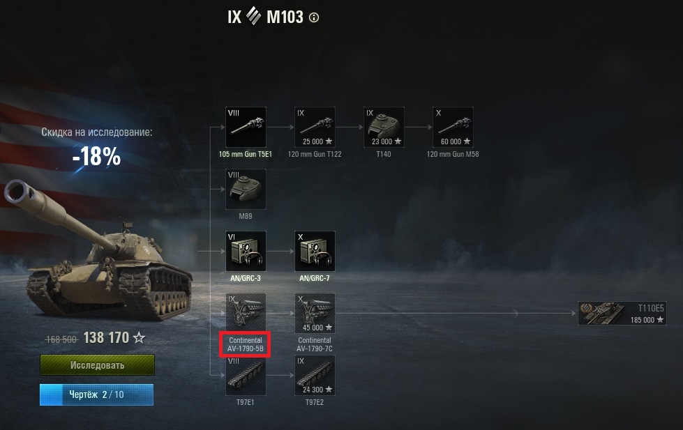 Ситуация следующая: Дано: Танк T54E1. Танк прокачан и куплен. Находится в ангаре. Выкачаны все модули кроме двигателя Continental AV-1790-5B. http://cdn-frm-eu.wargaming.net/wot/ru/uploads/monthly_09_2019/post-7693360-0-31442000-1569801206_thumb.jpg Танк M103. Танк не прокачан(и соответственно не куплен). Имеет такой же двигатель Continental AV-1790-5B. http://cdn-frm-eu.wargaming.net/wot/ru/uploads/monthly_09_2019/post-7693360-0-23713100-1569801199_thumb.jpg Собственно сам двигатель Continental AV-1790-5B. http://cdn-frm-eu.wargaming.net/wot/ru/uploads/monthly_09_2019/post-7693360-0-18728900-1569801211_thumb.jpg Данный двигатель считается стоковым у танка M103. Если я прокачаю по ветке этот танк, то этот двигатель будет доступен у хомяка для покупки. Вот такой вопрос. Если прокачать не танк M103, а прокачать просто двигатель прямо в ветке T54E1. То: 1. Стоимость прокачки танка M103 уменьшится. 2. Стоимость прокачки танка M103 не изменится, а опыт будет потрачен не рационально.
