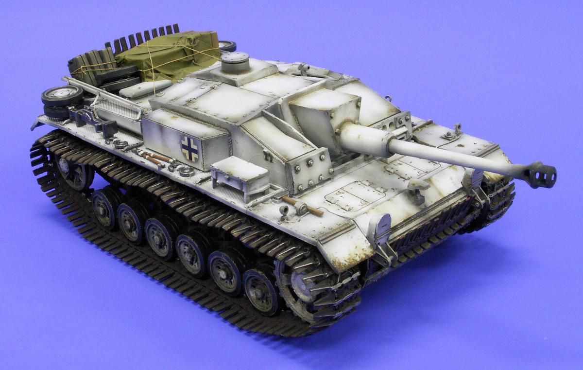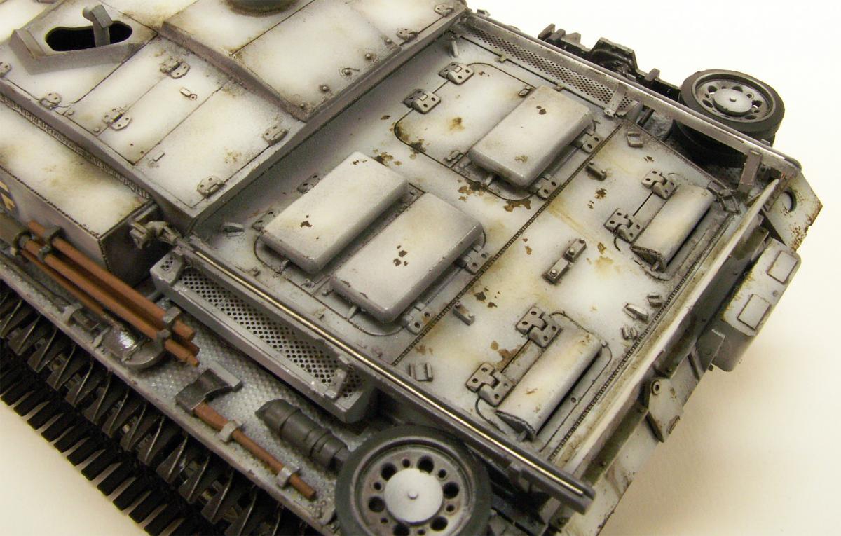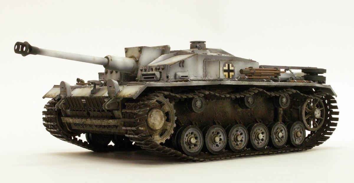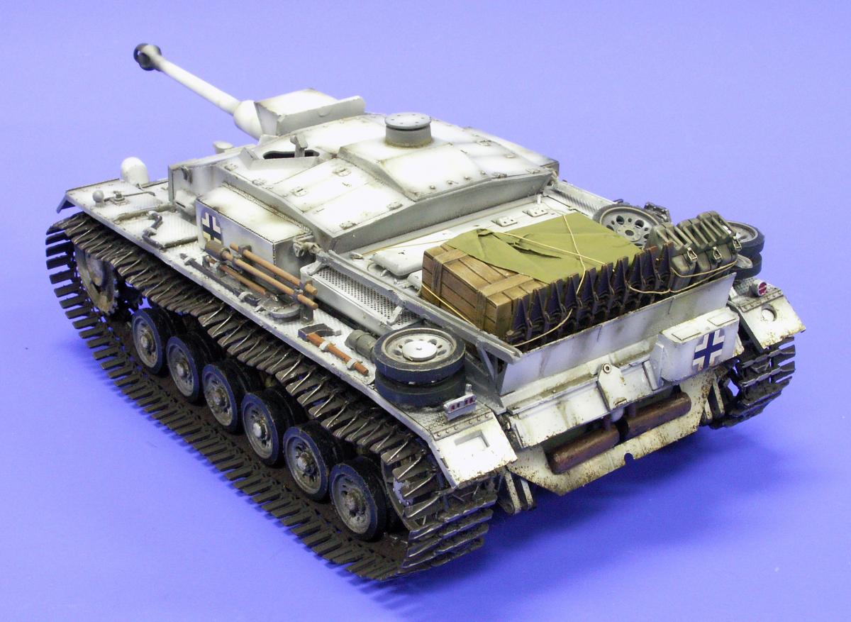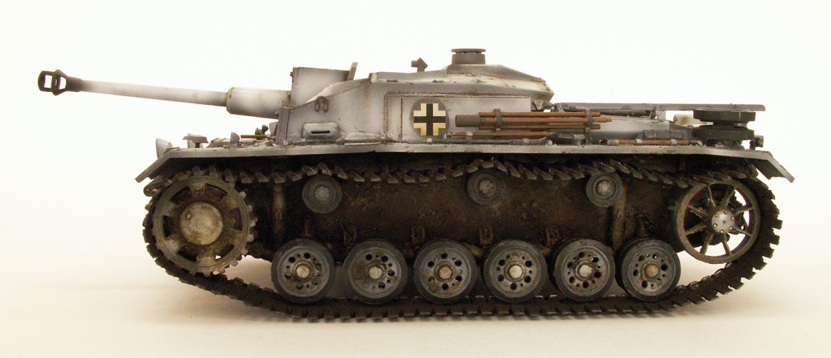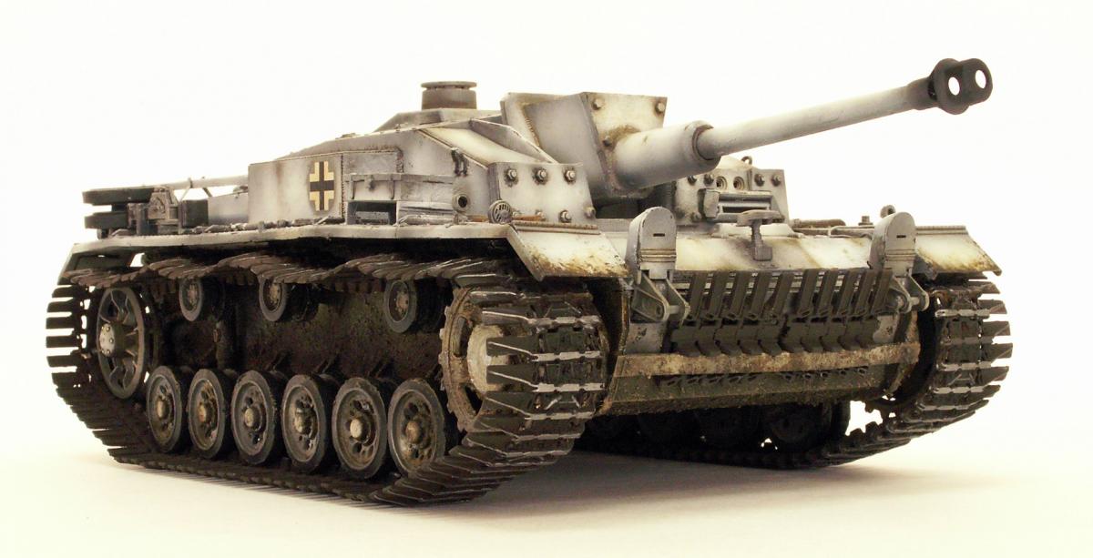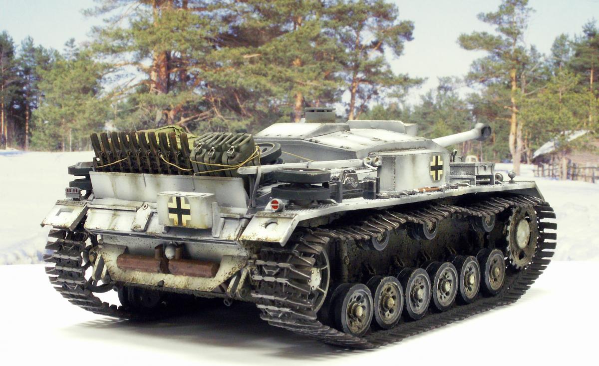 Приветствую ,представляю вашему вниманию штурмовое орудие StuG III Ausf F. Все как всегда - из запасников раннего возраста, отсюда и грубые косяки в матчасти, о которых напишу позже. Итак, модель фирмы Драгон 1993г. выпуска, Imperial kit. (Старше, чем я ). Изначально пытался делать Штуг на Харьковский фронт, ранняя весна 1943г., и приписать этот штуг кампфгруппе Краас, у которой в распоряжении было 4 таких агрегата. http://cdn-frm-eu.wargaming.net/wot/ru/uploads/monthly_01_2013/post-299542-0-24267600-1357903106_thumb.jpg Однако, из-за несоответствия матчасти приходится мне не прикреплять этот танк ни к одной из частей. Если в задней части Штуга можно исправить неправильный цвет конвойного фонаря на зеленый, то в лобовой части отдирать доп.броню, ствол и фары БОШ - почти нереально. По самой модели - сборка искоробочная. Добавил: -канистры Тамия. -Ящик от какой-то игрушки. (Ну и фактура!) -Сверху все это дело накрыл салфеткой, смоченной в ПВА. Окраска можно сказать не завершенная, в планах немного поотдирать зимний камо. Засохшая грязь делалась так: Берем клей ПВА, шпаклевку и краску землистого цвета(для того, чтоб если отвалится, не было видно цвета шпаклевки или клея), все размешиваем и тыкаем кистью по ходовой. В общем, вот сама работа: http://cdn-frm-eu.wargaming.net/wot/ru/uploads/monthly_01_2013/post-299542-0-25931100-1357902847_thumb.jpg http://cdn-frm-eu.wargaming.net/wot/ru/uploads/monthly_01_2013/post-299542-0-74682700-1357902717_thumb.jpg http://cdn-frm-eu.wargaming.net/wot/ru/uploads/monthly_01_2013/post-299542-0-92625300-1357902697_thumb.jpg http://cdn-frm-eu.wargaming.net/wot/ru/uploads/monthly_01_2013/post-299542-0-61090900-1357902487_thumb.jpg http://cdn-frm-eu.wargaming.net/wot/ru/uploads/monthly_01_2013/post-299542-0-26875800-1357902518_thumb.jpg http://cdn-frm-eu.wargaming.net/wot/ru/uploads/monthly_01_2013/post-299542-0-90300600-1357902585_thumb.jpg http://cdn-frm-eu.wargaming.net/wot/ru/uploads/monthly_01_2013/post-299542-0-48188500-1357902663_thumb.jpg http://cdn-frm-eu.wargaming.net/wot/ru/uploads/monthly_01_2013/post-299542-0-21209500-1357902304_thumb.jpg http://cdn-frm-eu.wargaming.net/wot/ru/uploads/monthly_01_2013/post-299542-0-76273800-1357902338_thumb.jpg http://cdn-frm-eu.wargaming.net/wot/ru/uploads/monthly_01_2013/post-299542-0-18206600-1357902412_thumb.jpg http://cdn-frm-eu.wargaming.net/wot/ru/uploads/monthly_01_2013/post-299542-0-87342400-1357902730_thumb.jpg http://cdn-frm-eu.wargaming.net/wot/ru/uploads/monthly_01_2013/post-299542-0-18184300-1357902750_thumb.jpg http://cdn-frm-eu.wargaming.net/wot/ru/uploads/monthly_01_2013/post-299542-0-54229300-1357902904_thumb.jpg http://cdn-frm-eu.wargaming.net/wot/ru/uploads/monthly_01_2013/post-299542-0-48907900-1357902917_thumb.jpg http://cdn-frm-eu.wargaming.net/wot/ru/uploads/monthly_01_2013/post-299542-0-71323900-1357902929_thumb.jpg Работа еще будет несколько изменяться, поэтому приму предложения о том, что исправить.