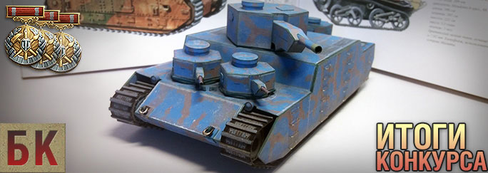 http://cdn-frm-eu.wargaming.net/wot/ru/uploads/monthly_09_2016/post-4861458-0-53124400-1473941336.jpg В день 100-летия танков мы подводим итоги конкурса по сборке танков "T26E4 Super Pershing. Бронекоробочка". Это почти рекордный результат (61 работа) по количеству участников, больше моделей было только на конкурсе по Хэлкату! Конкуренция в "верхней части" списка настолько высока, что в первой десятке разбежка составила 0,3 балла!!! Бронзовых мест будет два, а авторы, которые были очень близки к призовой тройке, получат не только премтехнку, но и дни према. И как было обещано, различные поощрительные призы получают ВСЕ участники. Итоговое решение жюри, победители и призеры: http://worldoftanks.ru/dcont/fb/image/creative_contribution_100px.png I место http://cdn-frm-eu.wargaming.net/wot/ru/uploads/monthly_09_2016/post-4861458-0-59341100-1473941347_thumb.jpg Parovoznik78 M46 Patton KR + слот + 14 дней према + медаль II место http://cdn-frm-eu.wargaming.net/wot/ru/uploads/monthly_09_2016/post-4861458-0-78031300-1473941340_thumb.jpg Ipsum142 Pz.Kpfw. IV Schmalturm + слот + 10 дней према + медаль III место http://cdn-frm-eu.wargaming.net/wot/ru/uploads/monthly_09_2016/post-4861458-0-69611300-1473941337_thumb.jpg Igo_R78 T-14 + слот + 7 дня према + медаль III место http://cdn-frm-eu.wargaming.net/wot/ru/uploads/monthly_09_2016/post-4861458-0-92659600-1473941349_thumb.jpg Yurik_s T-14 + слот + 7 дня према + медаль Все эти призеры получат форумный статус "Моделист"! и уникальный диплом. Специальные призы (за модели близкие к призовой тройке): PZ.KPFW. T 25 + 3 дня према: IBortmehanikI, sagizli, Roman_34, EJIEKTROHNK Поощрительные призы : PZ.KPFW. T 25: beowolf, dark_zlodey, mr_Knight, Trytyty2008, ZYATKOVO, VladDanovsky, BETEPAH_KOCMOCA_, garin_voin, AlexandrFe, bablo3777 M22 LOCUST: SeniaPrimak, Griga64, Vovashkin135, aprishko, _F_R_E_I_D_ 5 дней према: andrei_nifodov, Eazy_Wayne, ArdWar, Demiurg83, saw0072 3 дня према: см. под спойлер Morrien Dovahkiin58 The_incredible_me taksist0289 TERPQD ignat209 FijiWiji FatPig Ghostava Greenada Boogerman86 supersonik_15 Chacha_Brn skillet_forever DonCorleonee __GhOstD__ DizAzart leshasuperman Aretmka RigoN_00 Joat Iv_nick licolos Serge_kun Alextutitam ol99887 chipke Dal_Kiano fgg25c computer2004 Flame_SteF Поздравляем всех участников! P.S. Просим авторов, занявших 1-2-3 место, сообщить свое ФИО в личку gralexxl Начисление призов будет произведено в ближайшие дни. Можно немного отдохнуть, наточить ножницы, скоро выходит брошюра с Mark I !
