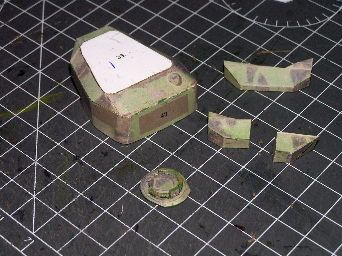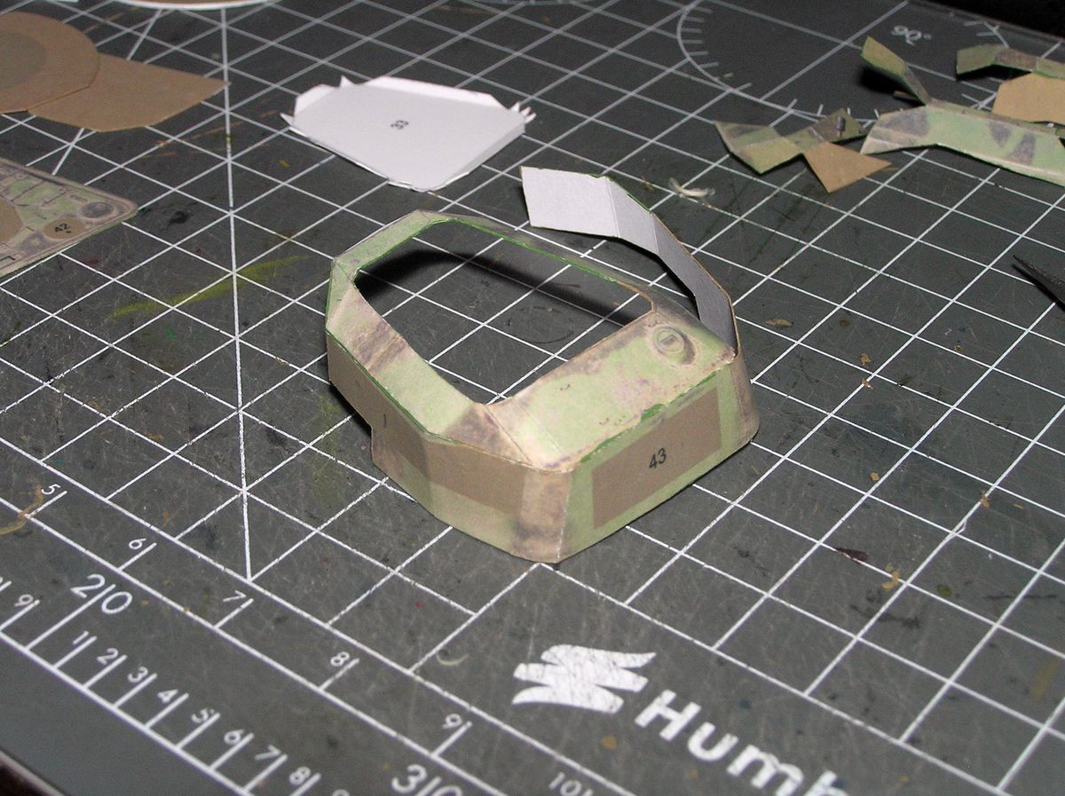 http://cdn-frm-eu.wargaming.net/wot/ru/uploads/monthly_06_2016/post-4861458-0-63121700-1465904506.jpg Традиционный рассказ от нашего "бумажного гуру", Targo_Kain, о сборке модели танка Centurion Mк.7/1. Бронекоробочка (стиль изложения автора сохранен), собираем модель вместе. Рекомендуем перед началом сборки ознакомиться с статьей о инструментах и материалах для бумажного моделизма. Автор уже известен по статьям по сборке моделей:"M103", "Type 5 Heavy", "AMX 50 B", "Японский Тигр", танка Т-54, ИС-2 и ПТ-САУ: Charioteer, До начала рассказа покажем бумагу, на которой печатал автор, надеемся, что это будет полезным: http://cdn-frm-eu.wargaming.net/wot/ru/uploads/monthly_06_2016/post-4861458-0-14226700-1465901402_thumb.jpg А теперь приступим к сборке! 1 http://cdn-frm-eu.wargaming.net/wot/ru/uploads/monthly_06_2016/post-4861458-0-88195200-1465901437_thumb.jpg Как обычно, сначала печатаем! Бумага - плотность 180 г/м2, матовая, для струйных принтеров. Детали корпуса (1 и 5) вырезаны, согнуты, подкрашены по торцам. Видно заготовки силовых элементов 2, 3 и 4, как обычно у меня – с избытком. 2 http://cdn-frm-eu.wargaming.net/wot/ru/uploads/monthly_06_2016/post-4861458-0-50622200-1465901439_thumb.jpg Вклеен в корпус шпангоут 3, к нему я подклеил шпангоут 2 – таким образом будет ступенька для опоры на неё крыши корпуса – так гораздо удобней клеить чем на клапан. 3 http://cdn-frm-eu.wargaming.net/wot/ru/uploads/monthly_06_2016/post-4861458-0-73125300-1465901440_thumb.jpg Все силовые элементы вклеены в корпус. 4 http://cdn-frm-eu.wargaming.net/wot/ru/uploads/monthly_06_2016/post-4861458-0-90316100-1465901441_thumb.jpg Деталь 1 почти собрана, видно дополнительную крышу МТО которую я сделал из запасной детали 5. 5 http://cdn-frm-eu.wargaming.net/wot/ru/uploads/monthly_06_2016/post-4861458-0-33381500-1465901443_thumb.jpg Корпус собран. Он у нас простой, по сути "кирпич заточенный спереди". 6 http://cdn-frm-eu.wargaming.net/wot/ru/uploads/monthly_06_2016/post-4861458-0-75765900-1465901444_thumb.jpg Наклеен люк мехвода (17) и ящик – деталь 18. 7 http://cdn-frm-eu.wargaming.net/wot/ru/uploads/monthly_06_2016/post-4861458-0-77727200-1465901445_thumb.jpg Собираем крылья и детали выхлопных патрубков, которые расположены на крыльях – детали 20 и 21. 8 http://cdn-frm-eu.wargaming.net/wot/ru/uploads/monthly_06_2016/post-4861458-0-83123900-1465901446_thumb.jpg Аккуратно приклеиваем крылья встык к корпусу. Начинать нужно с носа – зацепить деталью 15б за ВЛД и уложить вдоль линии назад. 9 http://cdn-frm-eu.wargaming.net/wot/ru/uploads/monthly_06_2016/post-4861458-0-07093100-1465901449_thumb.jpg Коробочки, которые будут на крыльях – детали патрубков 20 и 21 плюс ящики ЗиП – детали 19. 10 http://cdn-frm-eu.wargaming.net/wot/ru/uploads/monthly_06_2016/post-4861458-0-41420800-1465901450_thumb.jpg В ходовой всё как обычно, в уже опубликованных гайдах, просто пару фоток в процессе и результат. 11 http://cdn-frm-eu.wargaming.net/wot/ru/uploads/monthly_06_2016/post-4861458-0-82250100-1465901451_thumb.jpg Ходовая в сборе. 12 http://cdn-frm-eu.wargaming.net/wot/ru/uploads/monthly_06_2016/post-4861458-0-76389500-1465901452_thumb.jpg Один из важнейших этапов в этой модели. Приступаем к сборке башни. На фото вырезаны все нужные детали, и подкрашены торцы. Основная деталь – 26, её нужно правильно согнуть во всех нужных местах перед склейкой. 13 http://cdn-frm-eu.wargaming.net/wot/ru/uploads/monthly_06_2016/post-4861458-0-86901800-1465901453_thumb.jpg На фото деталь 26 с другого ракурса. Чтобы видно было, где и как согнуто. 14 http://cdn-frm-eu.wargaming.net/wot/ru/uploads/monthly_06_2016/post-4861458-0-89948200-1465901454_thumb.jpg Ещё один ракурс детали 26. Частично наклеена склейка 26а. 15 http://cdn-frm-eu.wargaming.net/wot/ru/uploads/monthly_06_2016/post-4861458-0-96047400-1465901455_thumb.jpg Правый бок крыши башни подклеен на склейку 26а. Далее нужно подклеить левый борт и свести борта сзади. 16 http://cdn-frm-eu.wargaming.net/wot/ru/uploads/monthly_06_2016/post-4861458-0-30510200-1465901457_thumb.jpg Вставка в крышу детали 27. Можно отрезать клапаны и подклеить на картон и таким образом вставить, или же сделать на клапанах как в развёртках. Я подклеил на картон, хотел получить более высокую жёсткость сборки. На клапа
