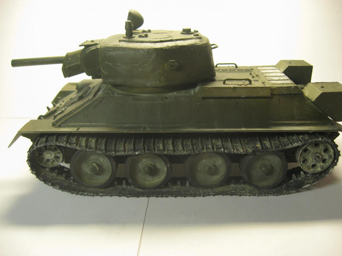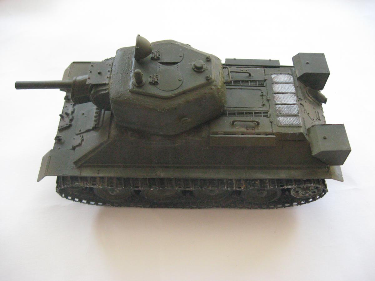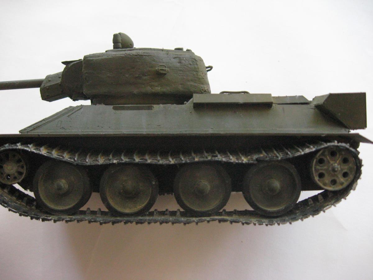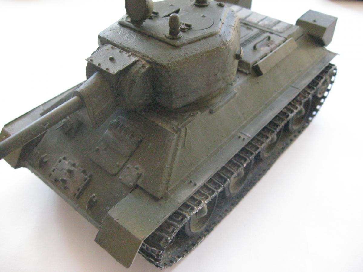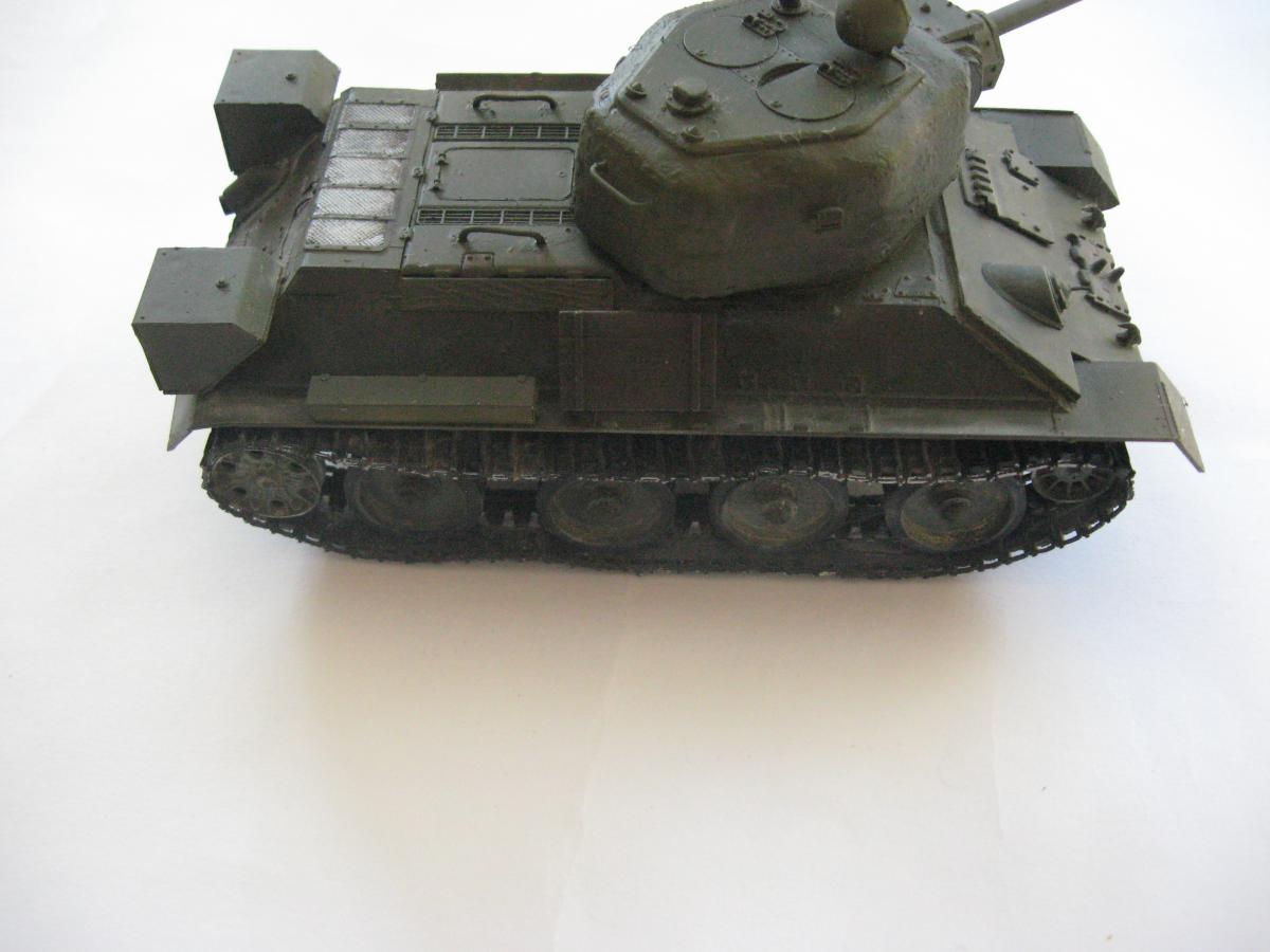 Решил я сделать модель из остатков хлама, был верх корпуса т34-85 от звезды, но не было ванны корпуса, ходовая от т-34 и гусеницы от т-54 , так же не было вообще ни какой башни. Ну в общем я решил сделать запил получится не получится (продумывал давно). 1)сделал из листового пластика ванну корпуса 2)сделал башню из листового пластика (самое сложное было для меня) 3)придумал орудие вышло примерно 100 мм 4)сделал поручни из проволоки и не большую проводку 5)окрас тамия, смывка масло, пигменты пастель Ну получилось вот так "т-34-100 обл. с доп. броне плитой на гусеницах от т-54" в общем полет фантазии) Эдакий танчик 6 лвл) P.S. количество катков и маска орудия моя личная задумка. Смотрите жду критику и советы что изменить или добавить.