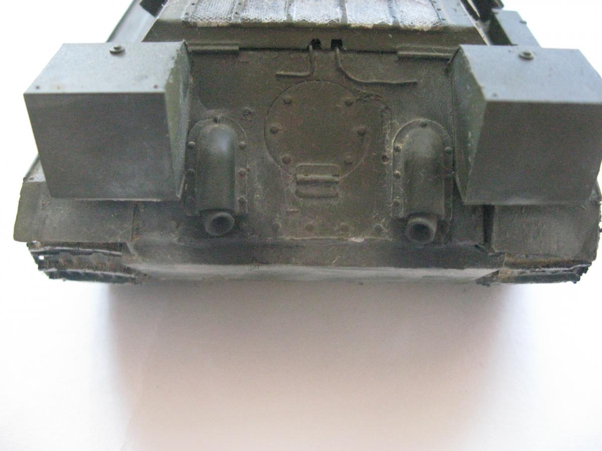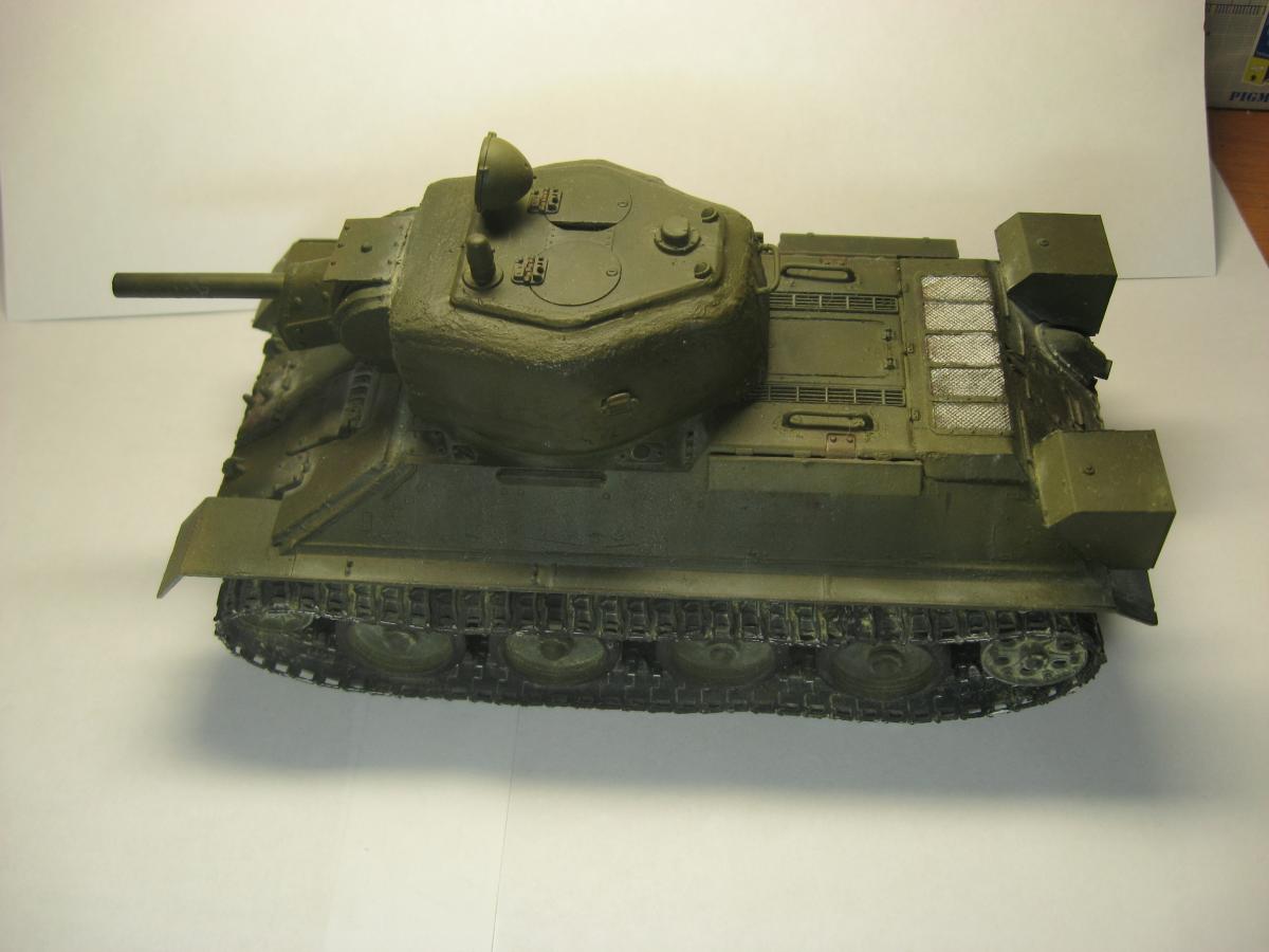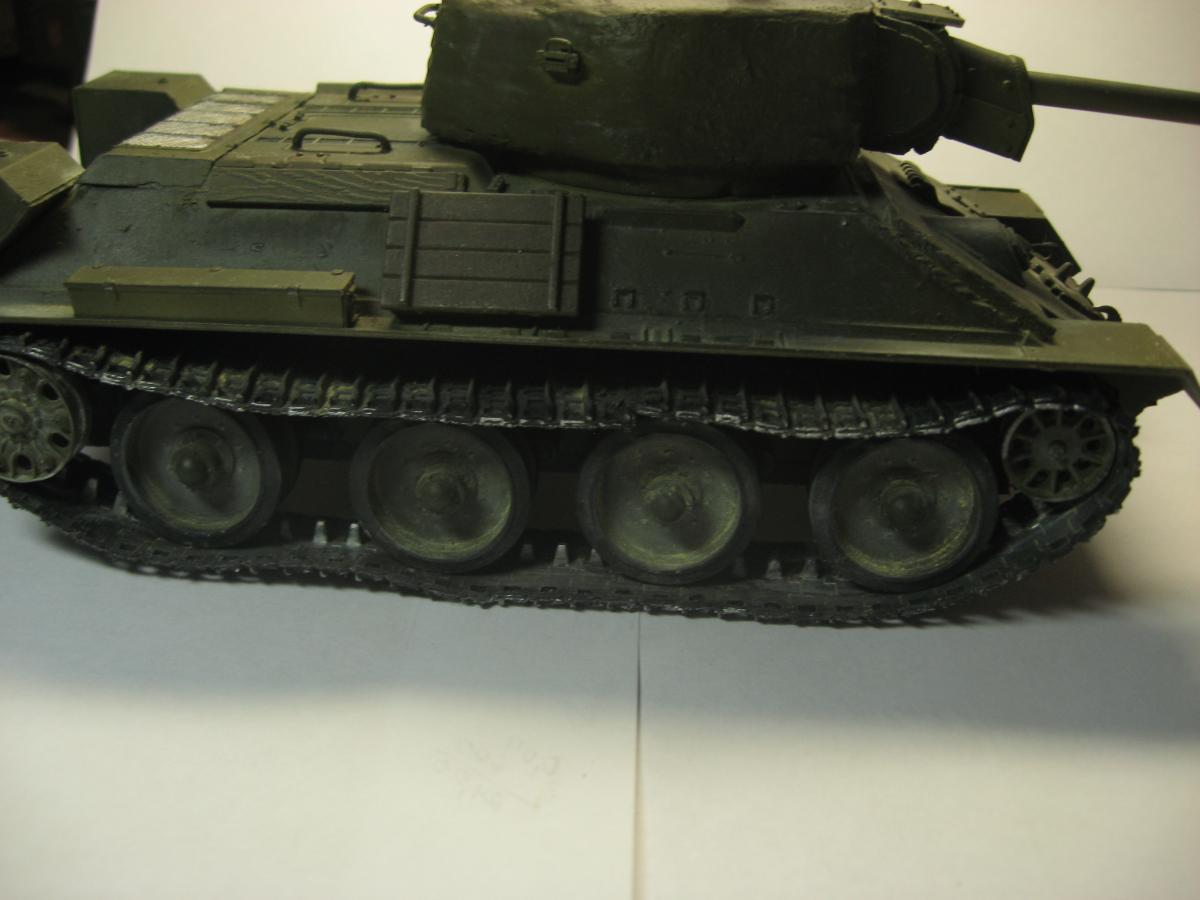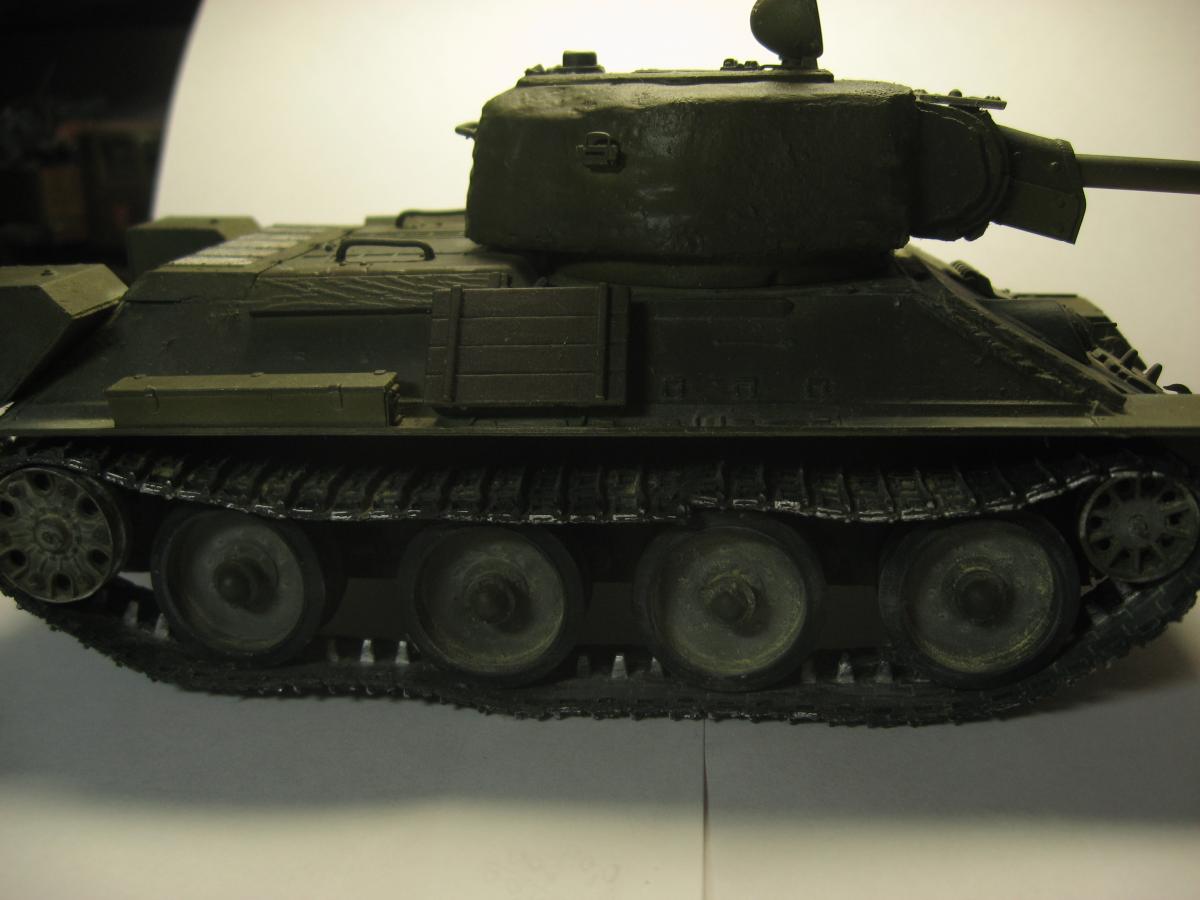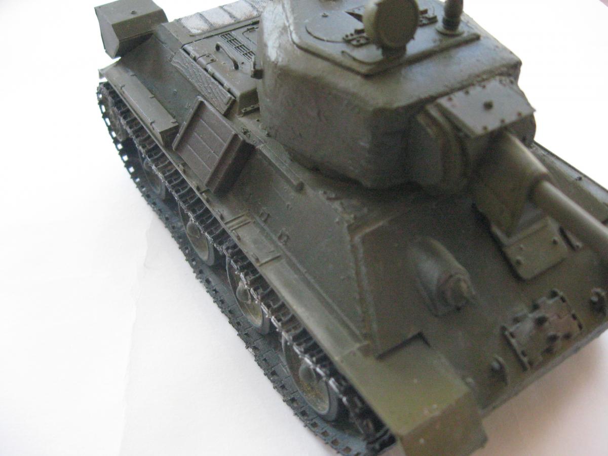 Решил я сделать модель из остатков хлама, был верх корпуса т34-85 от звезды, но не было ванны корпуса, ходовая от т-34 и гусеницы от т-54 , так же не было вообще ни какой башни. Ну в общем я решил сделать запил получится не получится (продумывал давно). 1)сделал из листового пластика ванну корпуса 2)сделал башню из листового пластика (самое сложное было для меня) 3)придумал орудие вышло примерно 100 мм 4)сделал поручни из проволоки и не большую проводку 5)окрас тамия, смывка масло, пигменты пастель Ну получилось вот так "т-34-100 обл. с доп. броне плитой на гусеницах от т-54" в общем полет фантазии) Эдакий танчик 6 лвл) P.S. количество катков и маска орудия моя личная задумка. Смотрите жду критику и советы что изменить или добавить.
