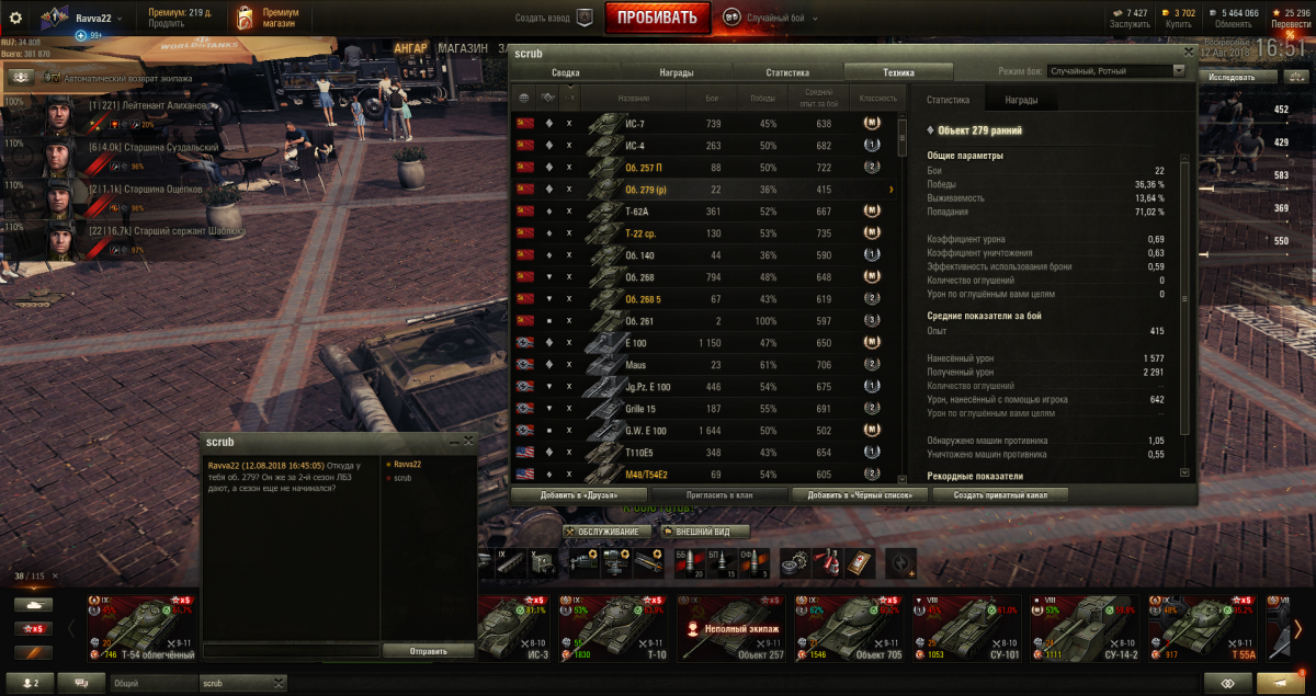 Сегодня в обычном бою, НА ОБЫЧНОМ сервере №7 встретил игрока с ником skrub У данного игрока в ОБЫЧНОМ бою были танки с супертеста - Обю 279(р) Химера, Эскалибур и куча других танков появлявшихся ТОЛЬКО на супертесте. И то не все. Eagle 7 например я и на тесте не встречал. Однако согласно его статистике он активно на них играет в обычном рандоме. Скрины с его статистикой прилагаю. Прошу ответить что это - баг, чит, или один из админов балуется?