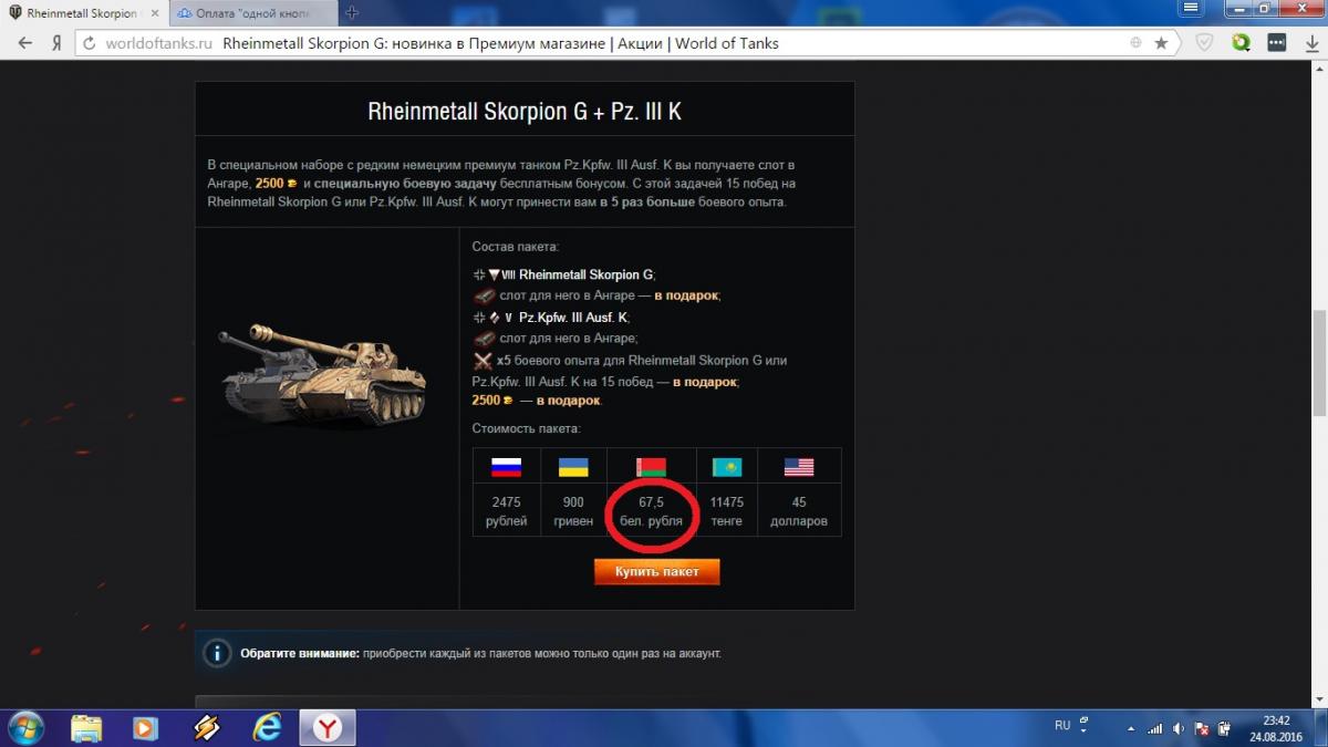 Всем добрый день! Суть вопроса такова: став жертвой рекламы, решил прикупить скорпиона (не знаю зачем он мне раку)). Зашел в прем магазин, посмотрел цену - 67,5 бел. руб. (большой пакет) (скрин 1). После работы закинул на кошелек 70 руб., довольный пришел домой, стал покупать и бац - стоимость при покупке 76,23 руб. (скрин 2) ??? Разница в 8,73 руб., а это 4,5$. Разница существенная, естественно денег мне не хватило, скорпа я не купил, нужно докинуть на кошелек еще 10 руб.((( Вопрос: откуда такая разница в цене? Почему на сайте заявлена одна, а в реальности значительно выше? Это развод такой? P.S. Может это знак, ну его, этого скорпиона? http://cdn-frm-eu.wargaming.net/wot/ru/uploads/monthly_08_2016/post-1007662-0-76805500-1472114228_thumb.jpg http://cdn-frm-eu.wargaming.net/wot/ru/uploads/monthly_08_2016/post-1007662-0-57360000-1472114247_thumb.jpg http://cdn-frm-eu.wargaming.net/wot/ru/uploads/monthly_08_2016/post-1007662-0-96377700-1472114240_thumb.jpg