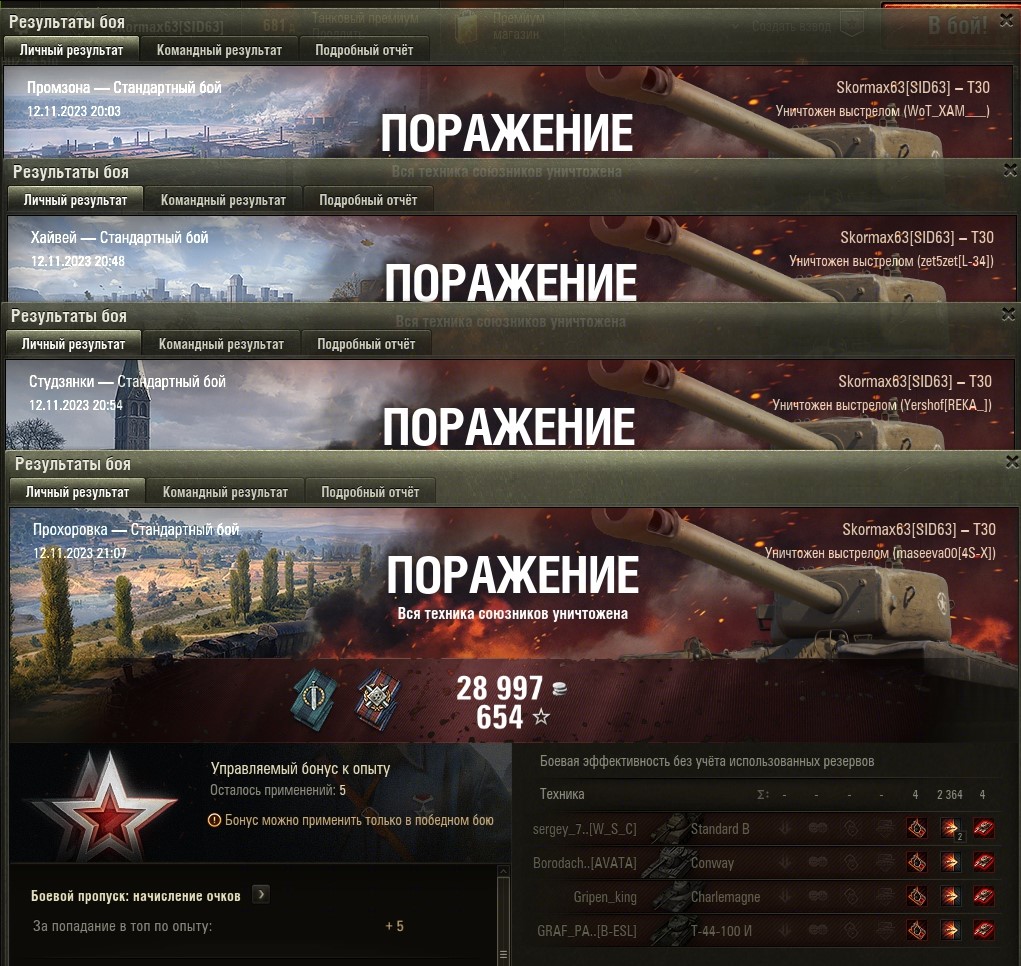 Приветствую! К вопросу манипуляций в виде нечестного состава команд, стрельбы мимо цели, и т.д. Когда целыми сессиями не прёт. "Режим угнетения". "Открутки". Как хотите называйте. Про шаблонные бои. Когда больше половины союзников хуже врага, а противники кибер-спорт показывают. И ты сам не можешь в таких боях ничегошеньки. Ну не летит снаряд, нет урона, либо количество урона ограничено. Некоторые говорят, что такого нет в игре. А я в очередной раз поспорю. Скрины прилагаю. Качество не очень, но вроде суть ясна. 7 одинаковых боёв подряд, (к сожалению менял сервер поэтому заскринил только последние 4). Мог наносить в два раза больше урона, но игра просто не даёт. Не попал, есть попадание, крит, земля, под танком, между стволом и корпусом... куда угодно, но не в урон... Разные карты, разные сетапы, а результат одинаковый. Если вы говорите, что нет скрытых механик, то что же это тогда? Это только за сегодня, а вообще такая дичь уже долго происходит каждую сессию последнее время... Я не помню уже нормальных сессий. Печалька. P.S.: Отличная идея сделать PVE режим, для обучения самое то. Или задницу охладить. Правда я в первом же бою на бабахе в бочину STB-1 попал без урона, но это ничего