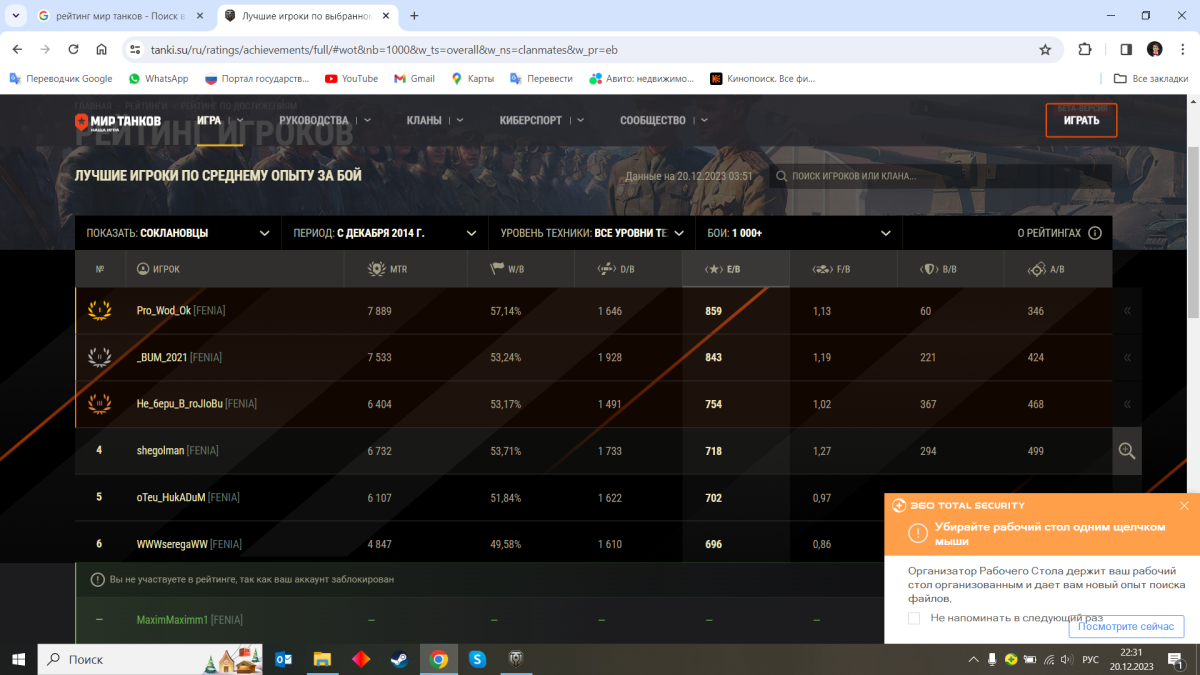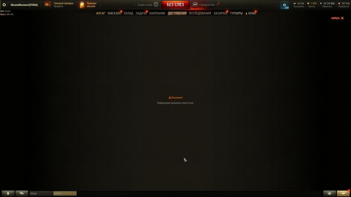 Добрый день! Уважаемые админы, прошу, поясните пожалуйста, почему не отображается таблица достижений в игре? При открытии появляется ошибка: нет доступа. На сайте нет возможности просмотреть достижения, возникает ошибка: нет доступа, аккаунт заблокирован. Личный рейтинг в игре неизменен и замер на значении со времени переноса с сервера WOT, показатели в игре и на сайте так же отличаются значительно, в пояснения из раздела техподдержки не укладывается, прецедентов на форуме так же не встретил. Скрины прилагаю, спасибо!