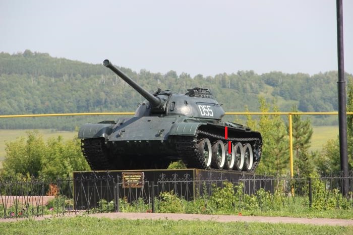 Здравствуйте! У меня такой вопрос. Почему в игре у танка Т54 образца 1949 года, расстояние от надгусеничной полки до гусеницы такое огромное ? Если посмотреть фотографии танка Т54 обр. 1949 года, то можно увидеть что расстояние это не такое огромное было в жизни. На фотографиях видно несоответствие. Даже если сравнивать с катками, в игре это расстояние равно чуть ли не 2/3 диаметру катка. А на реальных танках это расстояние было куда меньше.