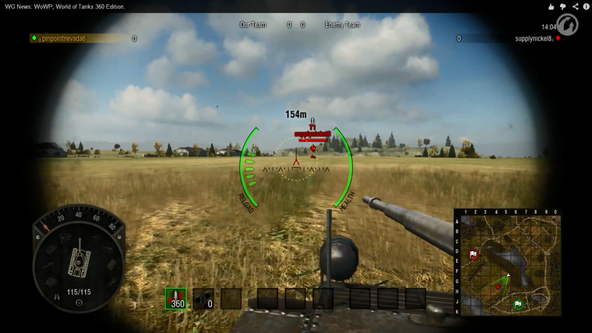 Сейчас смотрел видео,про World of Tanks на Xbox360,и там понравилась одна вещь, когда включаеш снайперский прицел видно танк и пушку,кто играл battlefield и ездил там на танке тот меня поймет,очень бы хотелось чтобы такое зделали в World of Tanks только на ПК) незнаю куда данное сообщение писать поэтому написал сюда!