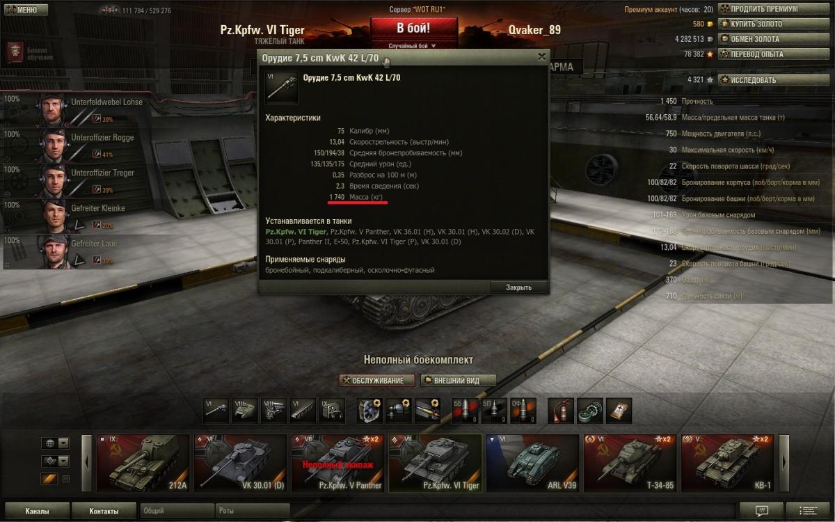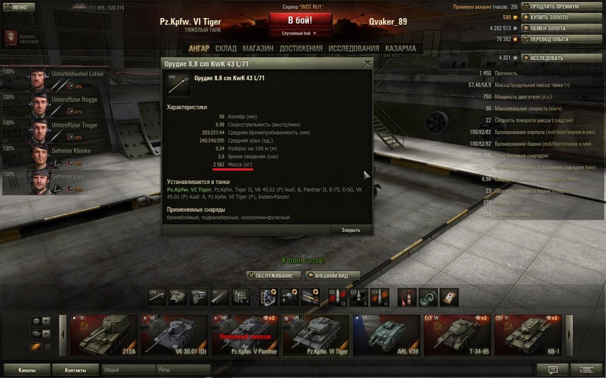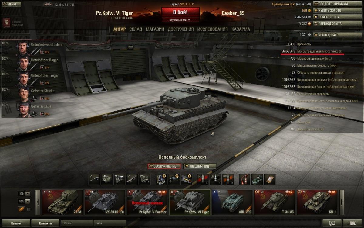 Чтобы узнать установится ли модуль нужно: 1. Узнать текущую и предельную массу танка http://cdn-frm-eu.wargaming.net/wot/ru/uploads/monthly_06_2013/post-5583894-0-98122000-1372086477_thumb.jpg Первое число - это текущий вес танка, второе - предельная масса танка, которую потянет текущая ходовая. 2. Узнать вес модуля, который будете устанавливать http://cdn-frm-eu.wargaming.net/wot/ru/uploads/monthly_06_2013/post-5583894-0-66615400-1372086143_thumb.jpg 3. Узнать вес модуля, который уже установлен http://cdn-frm-eu.wargaming.net/wot/ru/uploads/monthly_06_2013/post-5583894-0-89130900-1372086236_thumb.jpg 4. Из веса устанавливаемого модуля вычесть вес установленного и поделить результат на 1000 (перевод из килограмм в тонны) (2562кг - 1740кг)\1000=0.822 5. Результат прибавляем к текущей массе танка 56,64+0.822=57.462 6. Сравниваем результат с предельной массой танка 57.462 Если полученный результат больше предельной массы танка, то данный модуль без замены ходовой не установить. Если меньше или равен, то модуль установится без замены ходовой При расчёте для топового орудия стоит также учесть что сначала такой расчёт необходимо провести для топовой башни, так как подавляющее большинство топовых орудий требуют топовой башни