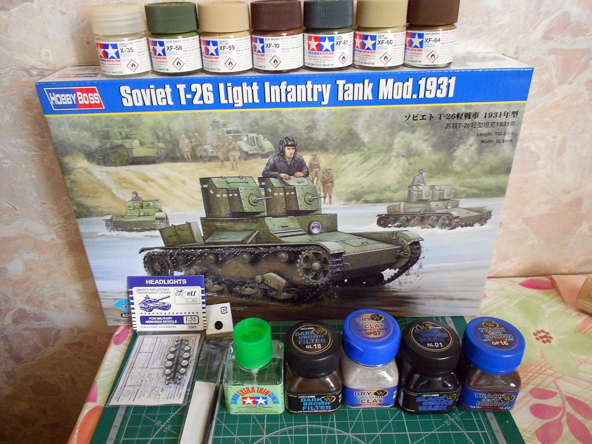 Долго не мог выбрать следующую модель,но всё таки решил остановиться на Т-26.Вроде ни чего не забыл(в магазине не было разбавителя для тамиевского акрила)Понял как опасно ездить в модельные магазины ,глаза разбегаются,поэтому составил списочек заранее.Соберусь с силами и начну. http://cdn-frm-eu.wargaming.net/wot/ru/uploads/monthly_08_2014/post-1471270-0-26537300-1407584094_thumb.jpg