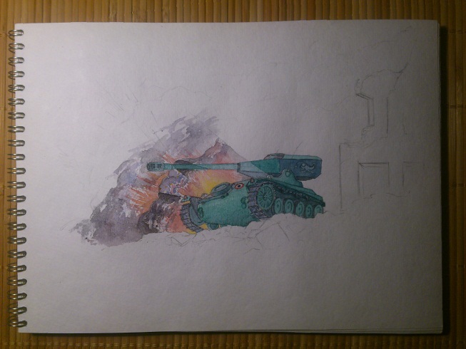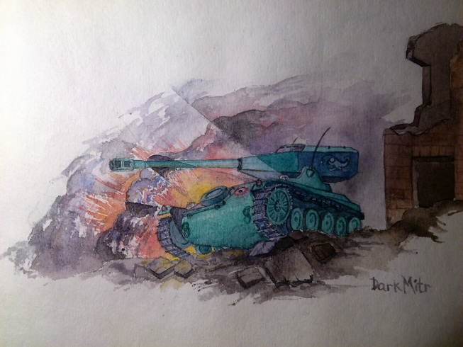 Предлагаю вашему вниманию небольшой урок. http://cdn-frm-eu.wargaming.net/wot/ru/uploads/monthly_02_2013/post-9025364-0-57653500-1361721137_thumb.jpg Приборы и материалы: карандаш, бумага, акварель, тонкая кисточка, стакан с водой. Выполнение работы: Рекомендую вдохновиться удачными скриншотами из игры, историческими фотографиями и чужими работами. Затем рисуем небольшой набросок, который возможно уже сложился в вашей голове. Не страшно если он будет немного кривой. http://cdn-frm-eu.wargaming.net/wot/ru/uploads/monthly_02_2013/post-9025364-0-10675000-1361720746_thumb.jpg Проработайте рисунок, следите за основными пропорциями, перспективой. Наметте окужение, фон. http://cdn-frm-eu.wargaming.net/wot/ru/uploads/monthly_02_2013/post-9025364-0-29054100-1361721053_thumb.jpg Настало время мелких деталей, такие как гусеницы, катки, запаски и прочее, но не увлекайтесь. http://cdn-frm-eu.wargaming.net/wot/ru/uploads/monthly_02_2013/post-9025364-0-26950600-1361721065_thumb.jpg Начинаем закрашивать акварелью. Продумайте цвета, освещение, держите в голове план и не делайте ничего необдуманного, акварель это не прощает. http://cdn-frm-eu.wargaming.net/wot/ru/uploads/monthly_02_2013/post-9025364-0-07163200-1361721081_thumb.jpg Продолжайте работу. Не обязательно закрашивать весь лист. Используйте несколько слоев: подождите пока один высохнет, наложте сверху новый. http://cdn-frm-eu.wargaming.net/wot/ru/uploads/monthly_02_2013/post-9025364-0-90053600-1361721107_thumb.jpg Главное во время остановиться и не испортить работу. Завершающе штрихи: антенны, кайки, камушки... http://cdn-frm-eu.wargaming.net/wot/ru/uploads/monthly_02_2013/post-9025364-0-07090100-1361721121_thumb.jpg Надеюсь мой урок был полезен. Мастера-художники наверняка знают все эти вещи, и если они с чем-то не согластны, то пожалуйста высказвайтесь. Успехов!