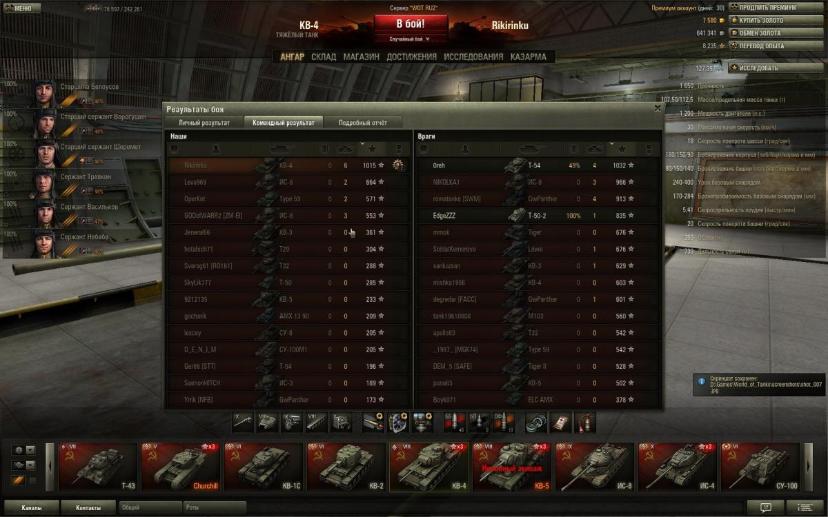 Хороший был бы бой. Жалко с командой не повезло. http://cdn-frm-eu.wargaming.net/wot/ru/uploads/monthly_10_2012/post-254868-0-48382400-1350718403_thumb.jpg http://cdn-frm-eu.wargaming.net/wot/ru/uploads/monthly_10_2012/post-254868-0-48772400-1350718418_thumb.jpg http://cdn-frm-eu.wargaming.net/wot/ru/uploads/monthly_10_2012/post-254868-0-57418400-1350718432_thumb.jpg http://wotreplays.ru...-rikirinku-kv-4