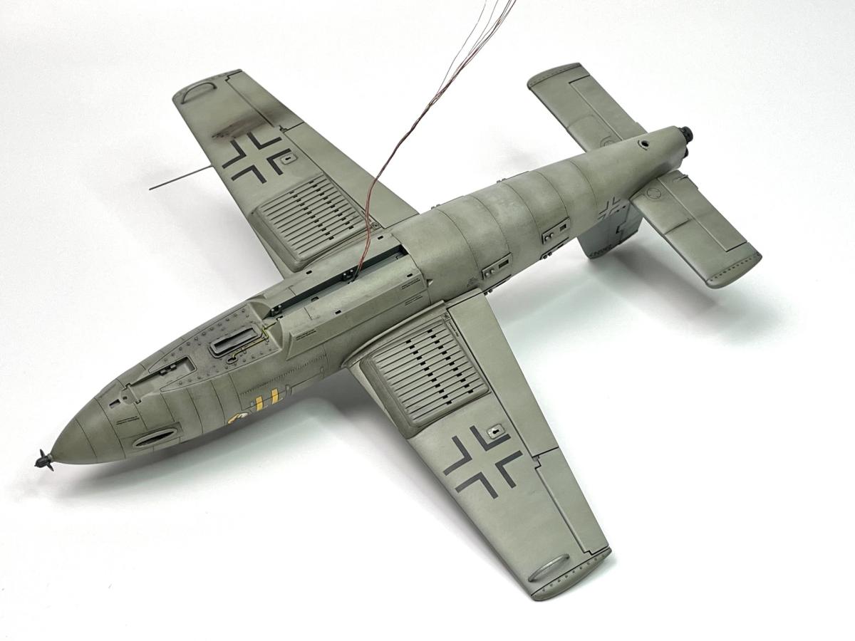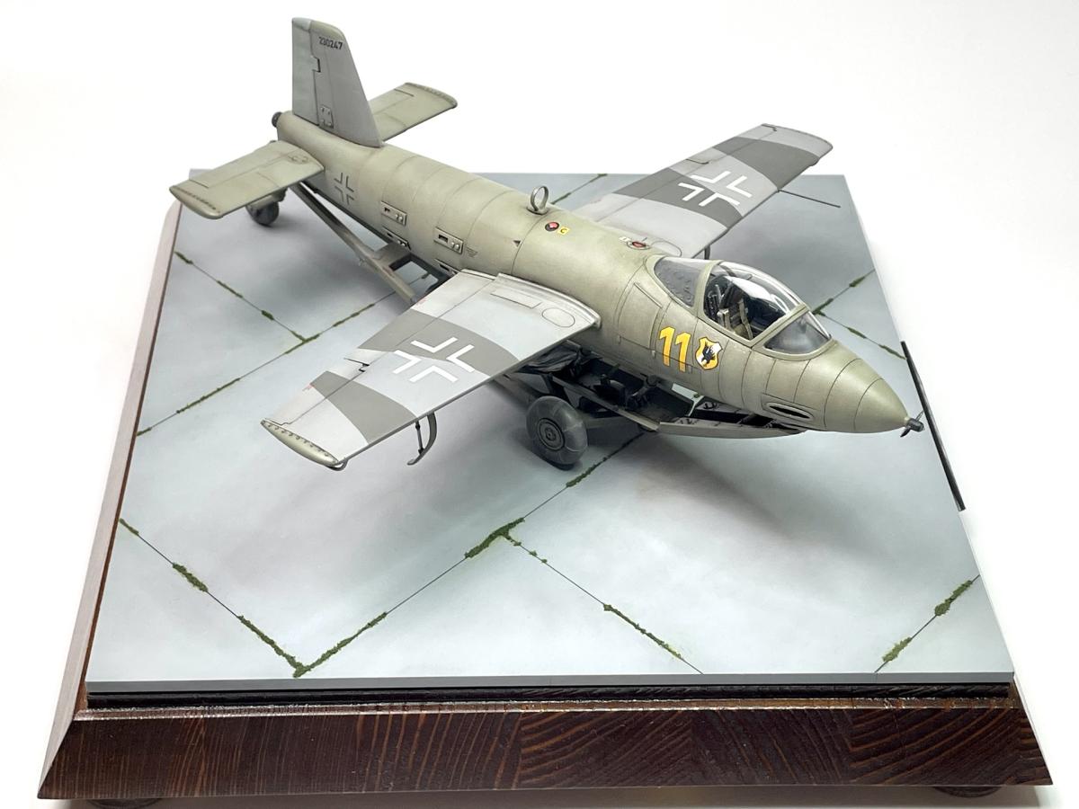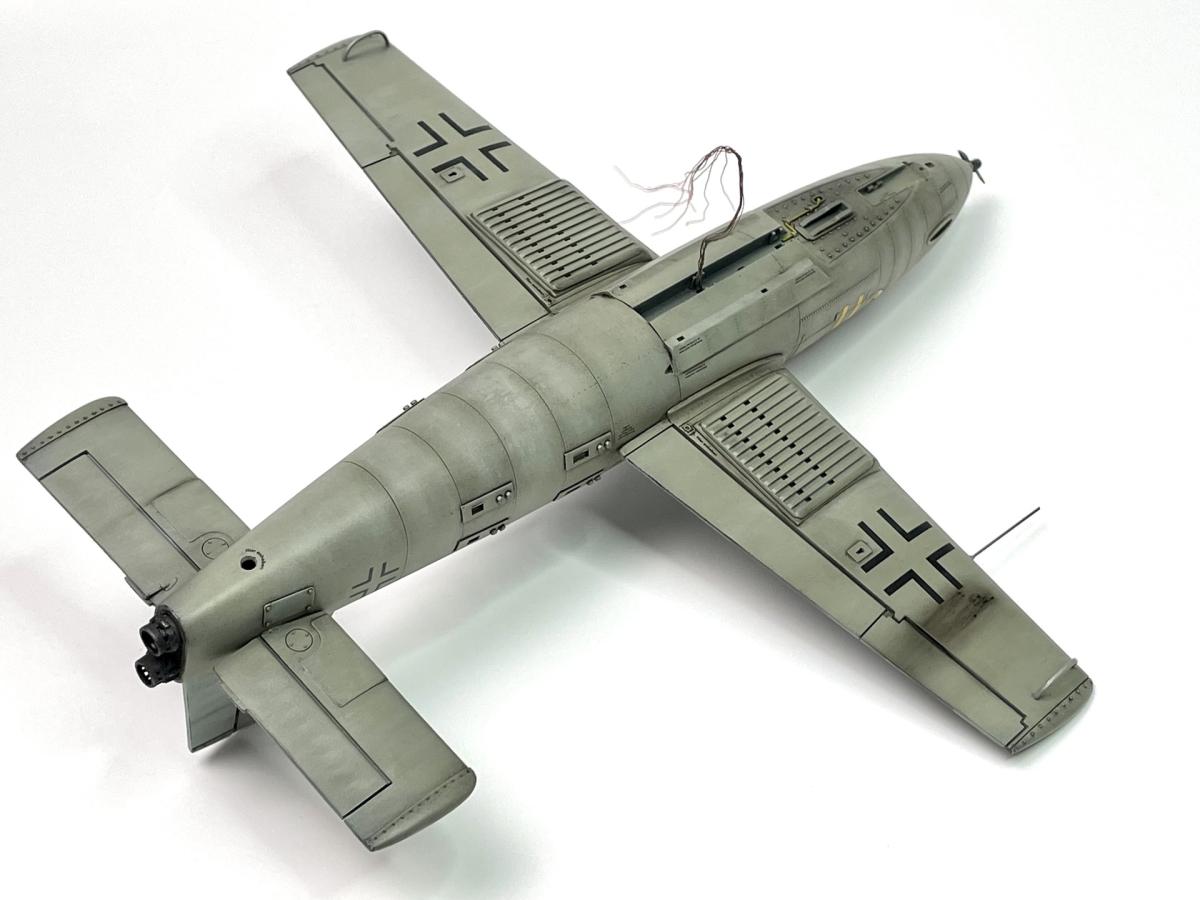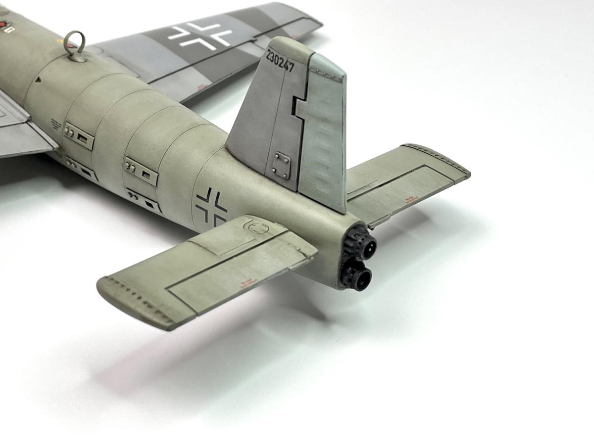 Приветствую, уважаемые коллеги моделисты! Расскажу о сборке сборной модели самолета Ju EF-127 от фирмы DasWerk (DW32001) в масштабе 1:32. В начале своей модельной деятельности, а именно в детстве, основными моими моделями были самолеты. Однако, так сказать, их качество сборки и окраски мной желало оставлять лучшего и мне мои результаты нравились от силы неделю, дальше же настрой пропадал. Потом появилась бронетехника, и я подсел именно на неё, изредка вспоминая про авиацию. Желание все же покорить модельное небо всегда оставалось со мной, но отходило на второй план после бронетехники. И вот, как-то раз приглянулся мне данный самолет и решил я его собрать во что бы то ни стало, собрал кабину, аккуратно все покрасил, склеил, загрунтовал, и упуская ряд важных нюансов, которые нужно знать при постройке авиации совершил ряд ошибок. Стал устранять ошибки, что в конечном итоге привело к гибели модели. Расстроенный и разочарованный в своих действиях, я вернулся к бронетехнике, при этом не сдаваясь, приобрел еще один набор данного самолета, в надежде, что когда-то появится запал собрать его снова. Да! Да! это вторая моя модель данного самолета, так что, имея кучу декалей и литников я сейчас имел в некоторых этапах сборки право на ошибку. И вот, самолет собран и окрашен и даже местами доработан. Конечно, не обошлось и без косяков. Изначально при покраске стал наносить камуфляж, но ошибся с цветовой гаммой и пришлось все задувать обратно в базу, жертвуя прешейдингом (в последствии его мне удалось восстановить при помощи масла на этапе везеринга). Ну, а теперь, по порядку изложу, что и как было выполнено по сборке, покраске и везерингу. Сборка.Из работ по кабине:- дополнен интерьер кабины пилота, имитацией проводки и пластиковой панели (остатки пластика от разных моделей);- добавлены фиксаторы стоп на педалях из обрезков плотной ткани;- проведена рабочая проводка светодиодов для имитации освещения кабины;- добавлены ремни для кресла пилота от фирмы Eduard 33179 (Fw 190A-8 for Revell kit. P.S. подходят по длине отлично).Покраску осуществлял красками Tamiya, Звезда (под кисть) и Vallejo (под аэрограф).Из работ по фюзеляжу:- сделана вертикальная расшивка носовой и хвостовой части;- выполнена имитация клепки (в основном в хвостовой части);- зашпаклеваны все стыки в два этапа (сначала использовал однокомпонентную Tamiya 87053, финишную Vallejo 70.401 ввиду её лучшей текучести и заполнения стыков);- в хвостовой части добавлены болты люка MasterClub MC435033 (в инструкции болты имеются, на модели по факту отсутствуют);- с помощью медицинской иглы, выполнил имитацию орудий в носовой части. Грунтовка и окраска.Грунт использовал AMMO One Shot Primer (black A.MIG-2023).Базовый цвет: смесь двух красок в пропорции 4/1 Vallejo 71.044 (Серо-зеленая светлая) / Vallejo 71.257 (RLM76 Светло-голубая).Крылья и киль: база Tamiya XF-19 (Небесная серая), полосы на крыльях Vallejo 71.259 (RLM75 Серо-фиолетовая).Руль направления Vallejo 71.257 (RLM76 Светло-голубая).Вся краска разбавлялась фирменными разбавителями Vallejo Airbrush Thinner 71.161 и Tamiya X-20A Thinner.Из того, что не получилось:Изначально при нанесении базы на грунт удалось добиться эффекта прешейдинга. После было решено наносить двухцветный камуфляж, но данную идею не удалось реализовать, ввиду неправильной подготовки мной к данной процедуре. После, было принято решение вернуть базовый цвет, однако эффект прешейдинга на модели уже едва был заметен. Лучше